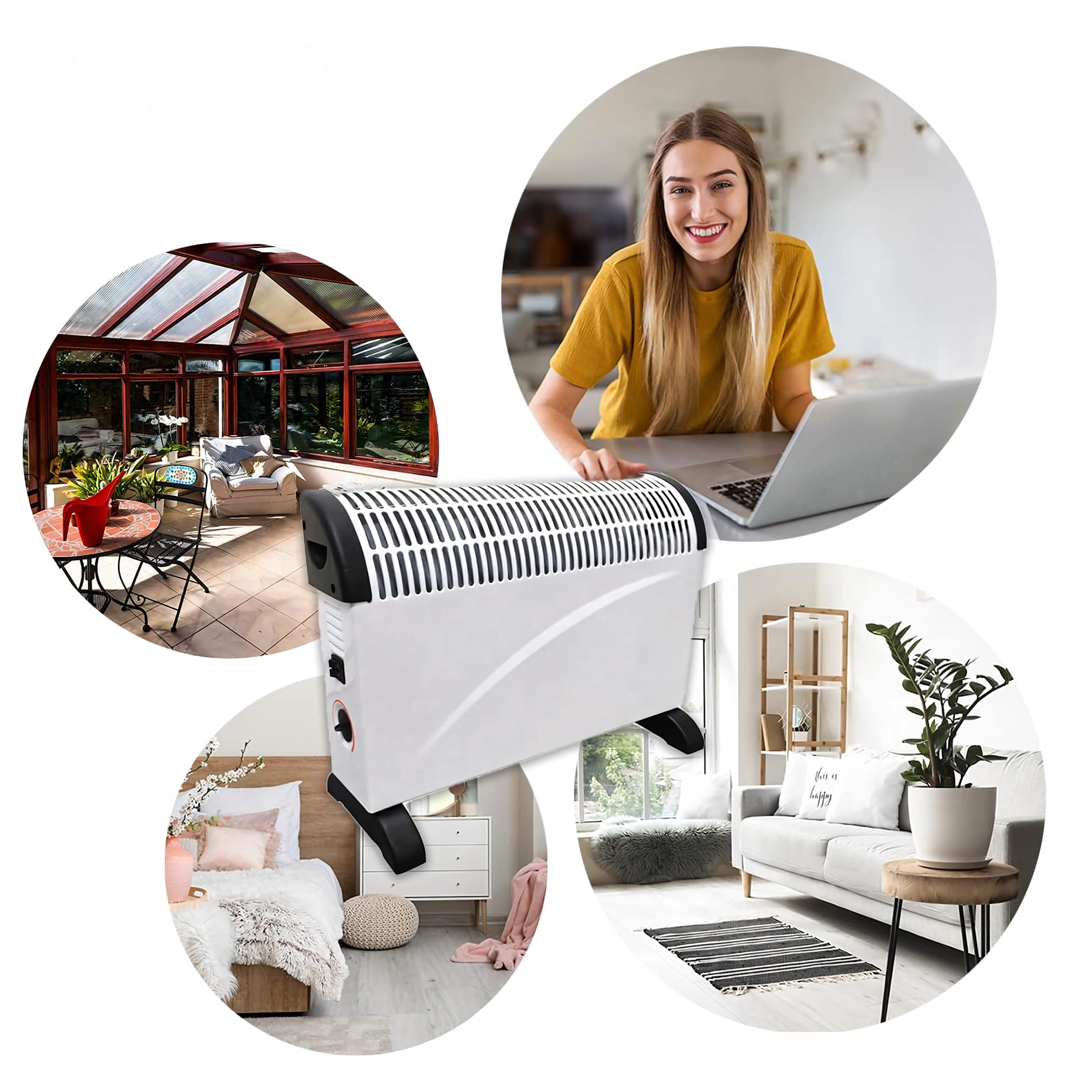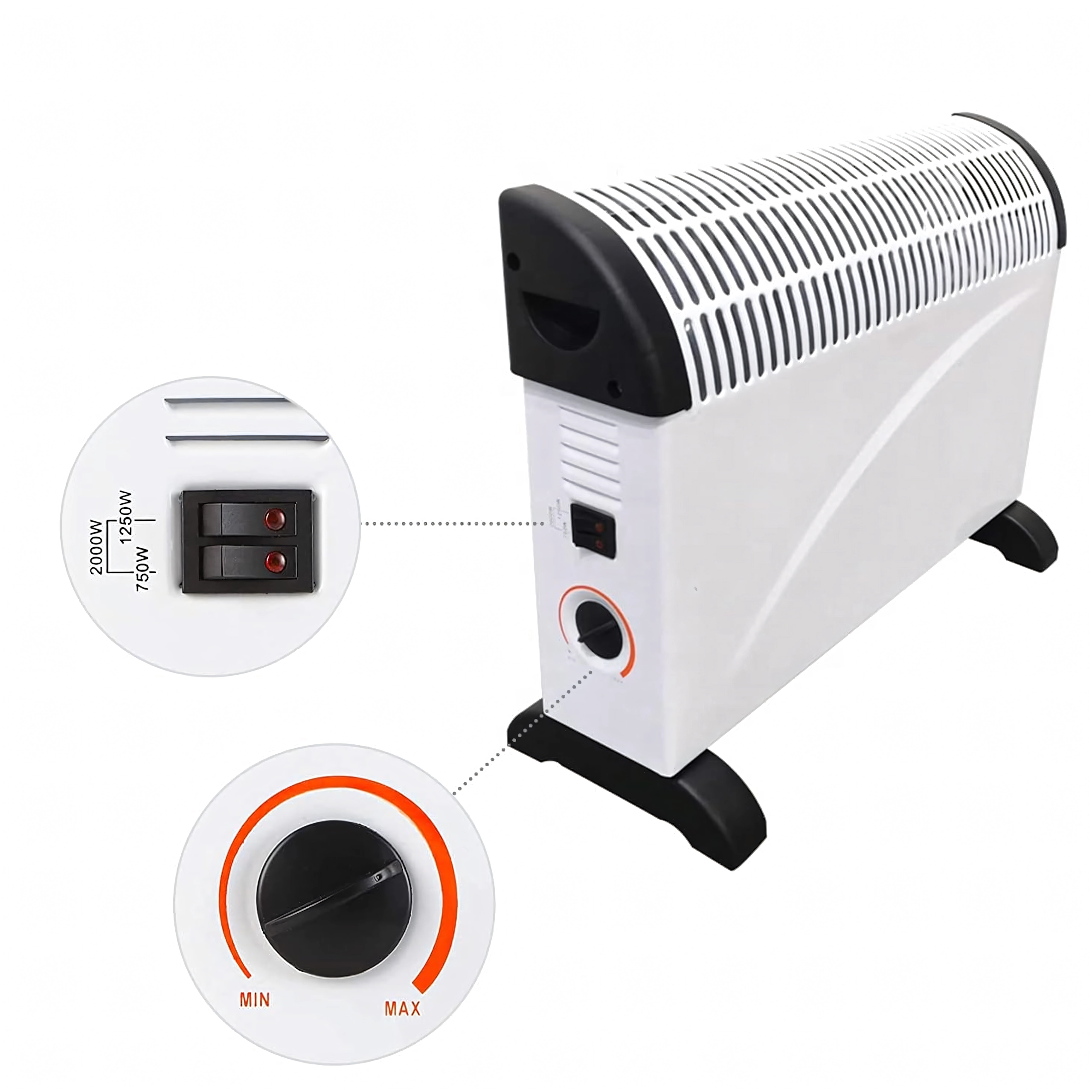 Pateicoties plūdeni regulējamam termostatam un 3 jaudas režīmiem, viegli izvēlēsieties optimālu temperatūru un enerģijas patēriņu. Stabilas kājiņas un integrētais rokturis nodrošina drošu un ērtu pārvietošanu.