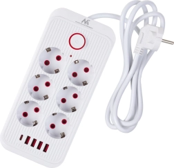 Universāls pagarinātājs ar 6 kontaktligzdām un 5 USB portiem (4× USB‑A, 1× USB‑C) vienlaicīgai vairāku ierīču barošanai un uzlādei. Nodrošina jaudu 2500 W, atbalsta 110–240 V / 50–60 Hz, un pateicoties izturīgai konstrukcijai ir ideāli piemērots birojam, mājām un spēļu zonai.