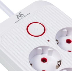 Iebūvēta poga ar indikāciju ļauj ar vienu nospiedienu izslēgt vai ieslēgt visas pievienotās ierīces. Bērnu aizsardzības žalūzijas pasargā no nejauša kontakta.