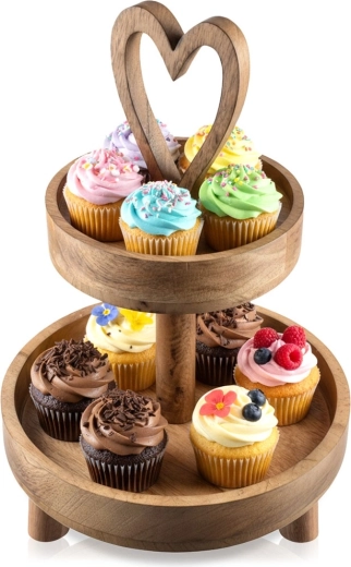 Stilīga divstāvu etažēra industriālā loft stilā piešķirs jūsu galdam kārtību un iespaidīgu noformējumu. Lielākais paplātes līmenis ar 29,5 cm diametru un mazākais ar 20 cm sniedz gana daudz vietas kēksiņiem, cepumiem, augļiem, kanapē un uzkodām. Augstās malas (3,5 cm) droši noturēs visu savā vietā, bet trīs izturīgas kājiņas nodrošinās stabilitāti.