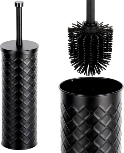 Šis praktiskais tualetes birstes komplekts ar metāla statīvu apvieno funkcionalitāti un stilu. Silikona galviņa ar blīviem izciļņiem efektīvi tīra podu, nebojā virsmu un, pateicoties nelīpošam materiālam, to ir viegli uzturēt tīru. Aizvērtais konteineris ar notecētāju notur lieko ūdeni prom no grīdas un veicina labāku higiēnu un smaku samazināšanu.