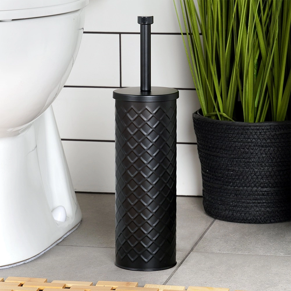 Matēti melnais izpildījums ar elegantu dimanta reljefu piešķir vannasistabai modernu izskatu. Metāla konstrukcija ir izturīga un stabila, rokturis ērti guļ rokā. Nomaināmā skrūvējamā tīrīšanas galviņa pagarina visa komplekta kalpošanas laiku.
