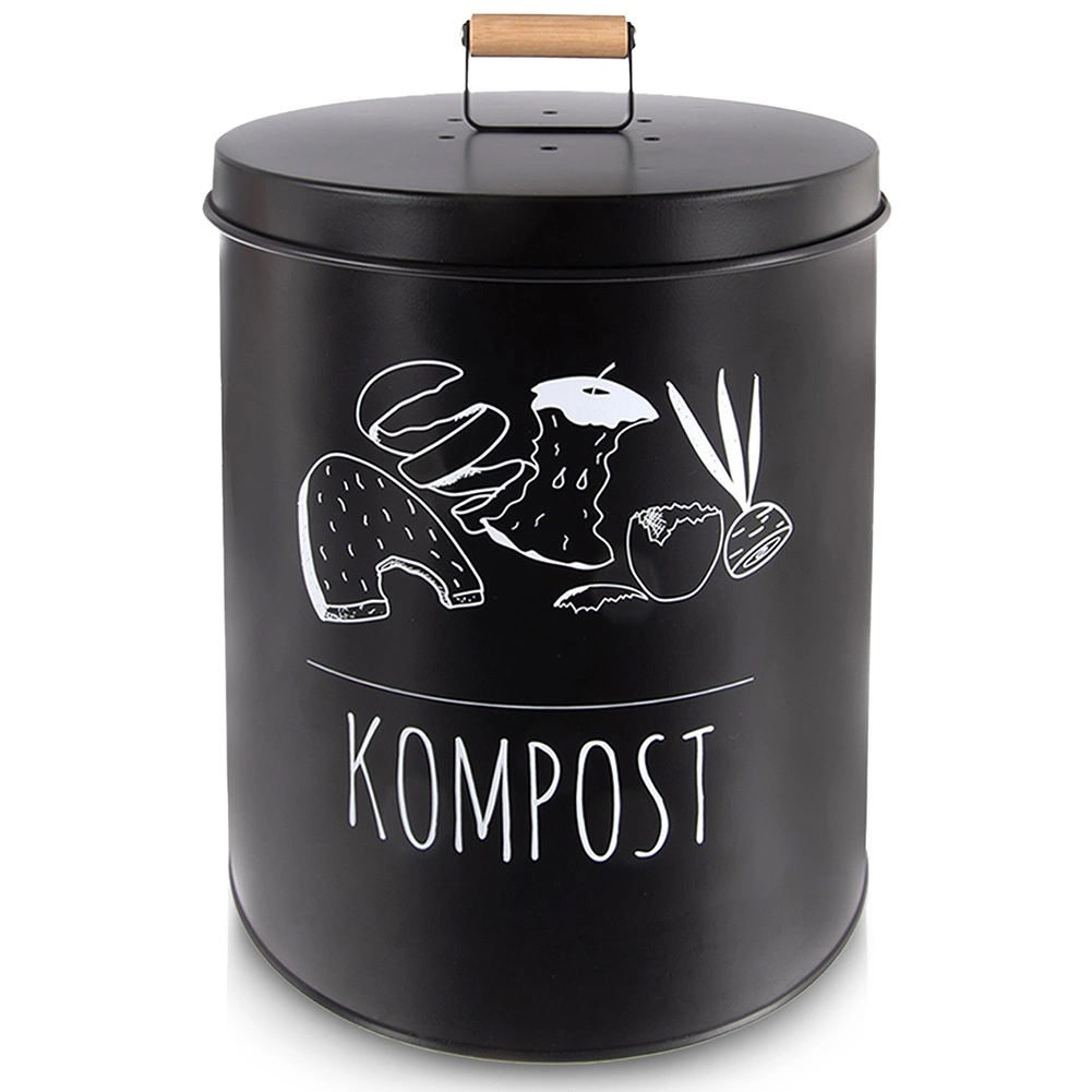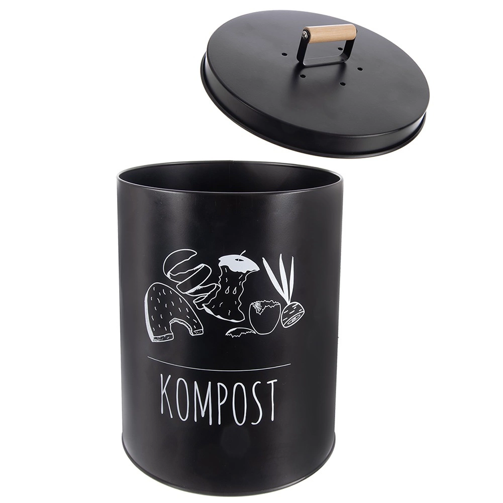 Robustais metāla izpildījums melnā krāsā nodrošina ilgu kalpošanas laiku un izturību ikdienas lietošanā. Hermētisks vāks samazina smaku izplatīšanos un kavē kukaiņu piekļuvi, savukārt koka rokturis atvieglo pārnēsāšanu. Kopšana ir vienkārša – pietiek noslaucīt ar mitru drānu.