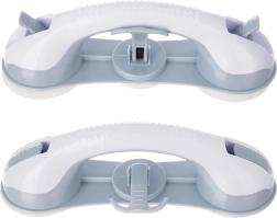 Praktisks vannas istabas rokturis ar piesūcekņiem lielākai drošībai un stabilitātei dušā, pie vannas vai tualetes. Uzstādīšana bez urbšanas, trīs jaudīgi piesūcekņi, ergonomisks satvēriens un praktisks āķis piederumiem. Izturīga un noturīga konstrukcija no kvalitatīvas mitrumizturīgas plastmasas. Ātra uzstādīšana uz gludām, attaukotām virsmām ar iespēju jebkurā brīdī rokturi noņemt, nebojājot flīzes.