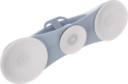 Robusta korpusa baltpelēkais dizains no kvalitatīvas plastmasas nodrošina stabilu un ērtu satvērienu. Trīs spēcīgi piesūcekņi tur droši, savukārt integrētais āķis piedāvā vietu sūklim vai lupatiņai, palīdzot uzturēt pārskatāmību vannas istabā.