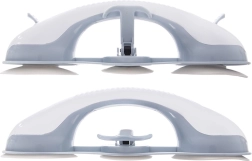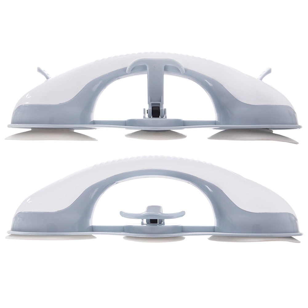 Trīs jaudīgi piesūcekņi ar svirām cieši pieķeras pie gludām, attaukotām flīzēm vai stikla. Rokturi jebkurā laikā var viegli noņemt un pārvietot, nesabojājot virsmu.