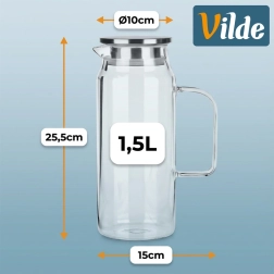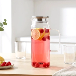 Stilīgā stikla krūka ir ideāla ikdienas ūdens, limonādes, sulu un ledus tējas pasniegšanai. Pateicoties caurspīdīgajam izpildījumam, skaisti izceļas augļu šķēles un garšaugi, kamēr nerūsējoša tērauda vāciņš ar sietiņu tos notur iekšpusē. Krūka lieliski der ģimenes galdam, dārza pasēdēšanai un vakara viesībām.