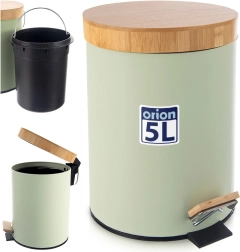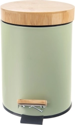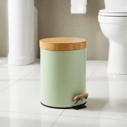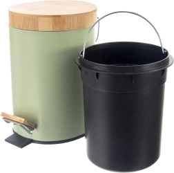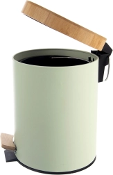 Kompakta atkritumu tvertne ar ietilpību 5 l elegantā pasteļzaļā krāsā apvieno metāla korpusu ar bambusa vāku un pedāli. Pateicoties higiēniskai bezkontakta atvēršanai ar pedāli, izņemamam iekšējam spainim un stabilai konstrukcijai, tā ir ideāli piemērota vannasistabai, virtuvei, birojam un guļamistabai.