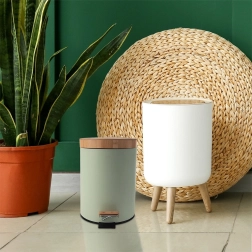 Stilīgā Greenish sērijas tvertne ienes tīru dizainu un praktiskumu gan mazās, gan vidēja izmēra telpās. Maigi zaļais metāla korpuss papildināts ar dabīgu bambusu, kas piešķir mājīgumu interjeram. Pateicoties klusajam un higiēniskajam pedālim, vāku var ērti atvērt bez roku izmantošanas.