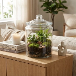 Lielapjoma stikla trauks eleganti apvieno izskatu un funkcionalitāti. Pateicoties caurspīdīgajam, biezajam stiklam, saturs vienmēr ir perfektā pārskatā, kamēr stikla vāks ar blīvējumu sargā pārtiku no mitruma un aromāta zuduma. Izmēri 20 × 20 × 29,5 cm nodrošina daudz vietas gan izejvielām, gan mājgatavotiem gardumiem.
