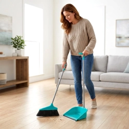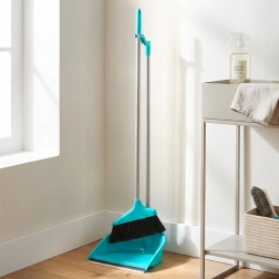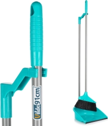 Šis slotas un lāpstiņas komplekts elegantā tirkīzzilā krāsā nodrošina ērtu uzkopšanu stāvus. Garie kāti palīdz saglabāt dabisku stāju un mazina muguras noslodzi, savukārt lāpstiņas gumijas mala (platums 2 cm) lieliski piekļaujas grīdai un notver pat smalkus putekļus, neatstājot atlikumus.