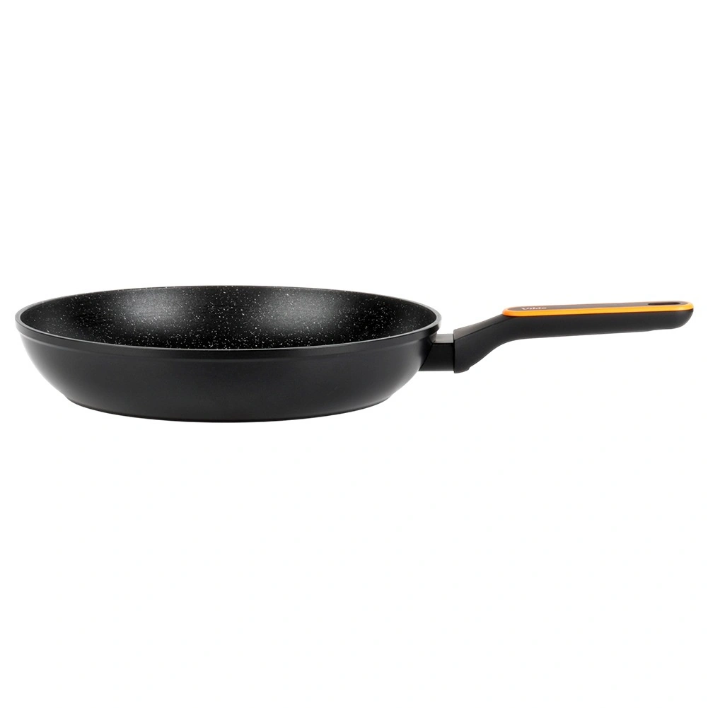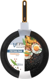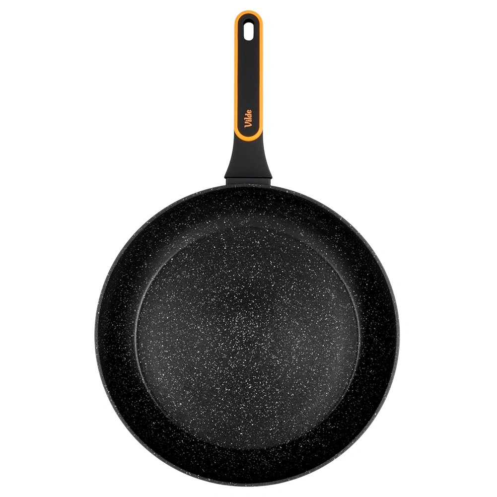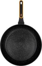 Robusta panna no alumīnija liejuma ar modernu, akmens izskatu ir ideāla gan cepšanai, gan sautēšanai. Izturīgā nepielīpošā granīta kārta melnā krāsā nodrošina vieglu ēdiena atdalīšanu un ātru tīrīšanu – arī trauku mazgājamajā mašīnā. Ergonomisks rokturis ar neslīdošu pārklājumu un praktisku atveri iekarināšanai gatavošanas laikā neuzkarst.