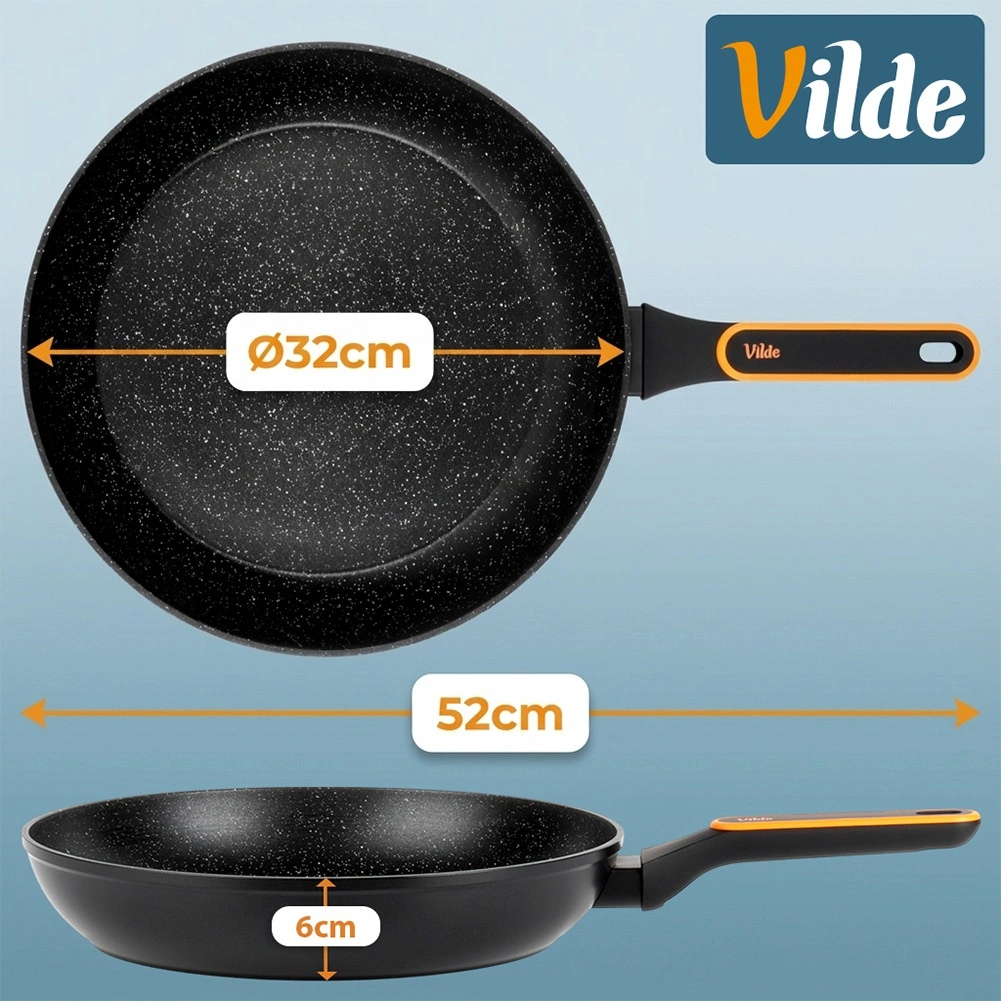 Universāla granītapanna ar diametru 32 cm ikdienas gatavošanai. Pateicoties nepielīpošajai granīta virsmai, ātrai un vienmērīgai siltuma sadalei un ērtam, neuzkarstošam rokturim, sagatavosiet gaļu, dārzeņus un olas ar minimālu tauku daudzumu uz visiem plīšu veidiem, tostarp indukcijas.