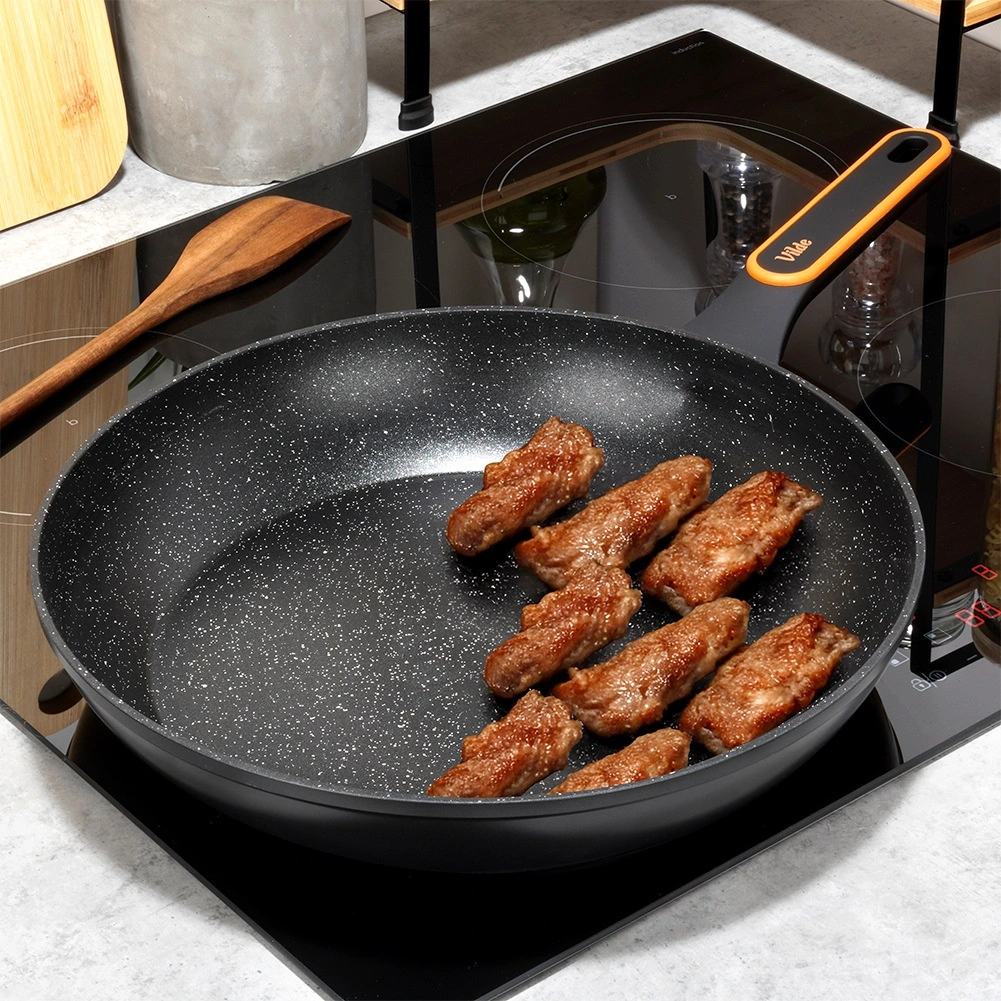 Biezā pamatne ar indukcijas bāzi nodrošina ātru un ekonomisku uzsildīšanu un stabilitāti uz vārāmās virsmas. Panna ir saderīga ar gāzes, elektriskajām, stikla keramikas un indukcijas plītīm un lieliski piemērota sulīgu steiku, kraukšķīgu dārzeņu un maigu olu pagatavošanai ar minimālu eļļas daudzumu.