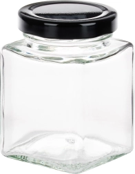 Caurspīdīgais stikls ļauj nekavējoties pārbaudīt saturu, melnie metāla vāciņi ar skrūvējamu gredzenu pasargā no mitruma un saglabā aromātu.