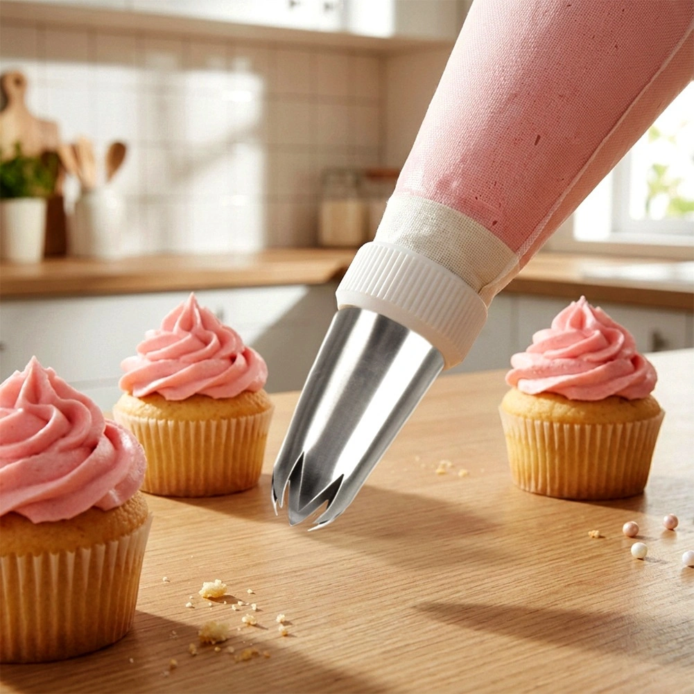 - Elegants zvaigžņveida efekts – ideāli piemērots maliņām, rozītēm, bezē cepumiņiem un krēmveida virpuļiem.