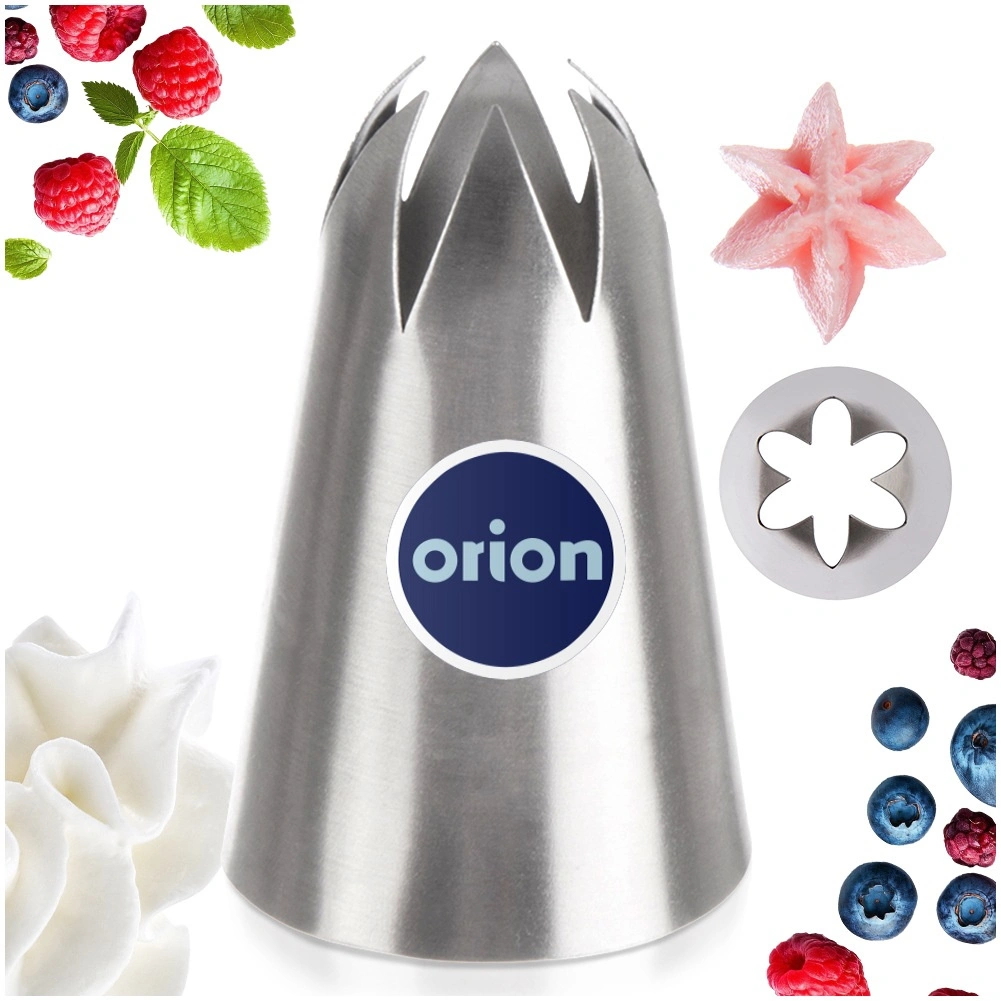 Universāls nerūsējoša tērauda dekorēšanas uzgalis zvaigznes formā vieglai un precīzai tortu, pīrāgu un cupcake dekorēšanai. Piedāvā efektīgus zvaigžņveida rakstus, ir izgatavots no izturīga nerūsējoša tērauda, der vairumam konditorejas maisiņu un ir piemērots trauku mazgājamajai mašīnai.
