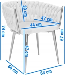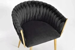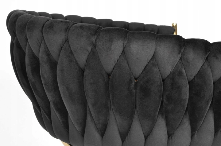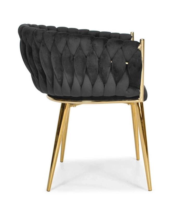 Pārdomātais, pītais atzveltnes stepējums maigi apņem muguru un kopā ar aptuveni 7 cm biezo mīksto sēdētāju nodrošina ērtumu ilgākas sēdēšanas laikā. Metāla rāmis zelta tonī ir gan stingrs un stabils, ar nestspēju līdz 130 kg.