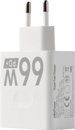 Šis jaudīgais baltais lādētājs ir ideāli piemērots Ulefone ARMOR sērijas tālruņiem un citām USB‑C ierīcēm. Pateicoties 66 W jaudai, tas būtiski saīsina uzlādes laiku un nodrošina stabilu enerģiju mājās un ceļā.