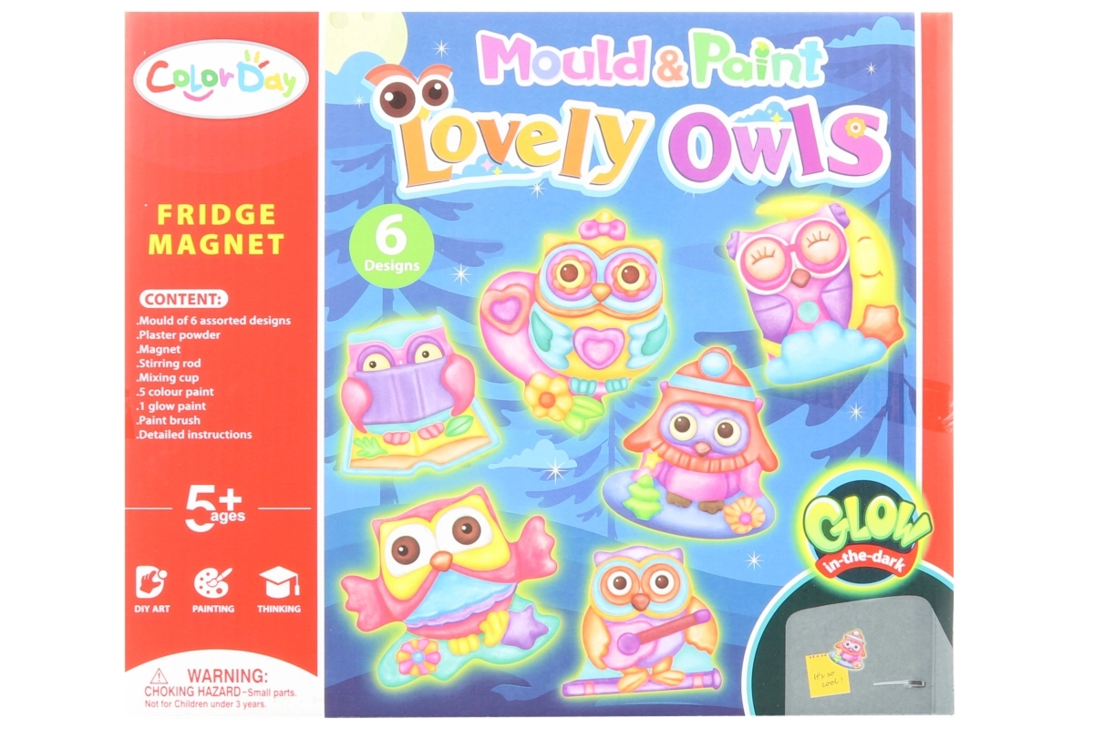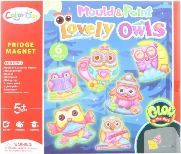 Radošs komplekts bērniem, ar kuru viegli izgatavot savas magnētiņas pūcīšu formā, kas spīd tumsā. Iepakojumā ir viss nepieciešamais – ģipsis, forma ar 6 motīviem, krāsas, ota, magnēti un instrukcija. Ideāla izklaide bērniem no 5 gadu vecuma un lieliska dāvana mazajiem radošajiem.