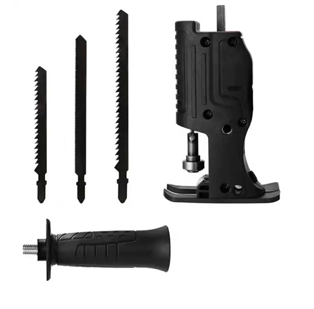 Praktisks pārveidotājs pārvērtīs jūsu elektrisko urbjmašīnu kompaktā figūrzāģī ātriem un precīziem griezumiem darbnīcā un mājās. Vienkārša nostiprināšana patronā nodrošina, ka varēsiet sākt griezt dažu mirkļu laikā, bet ergonomiskais sānu rokturis palielina vadības precizitāti.