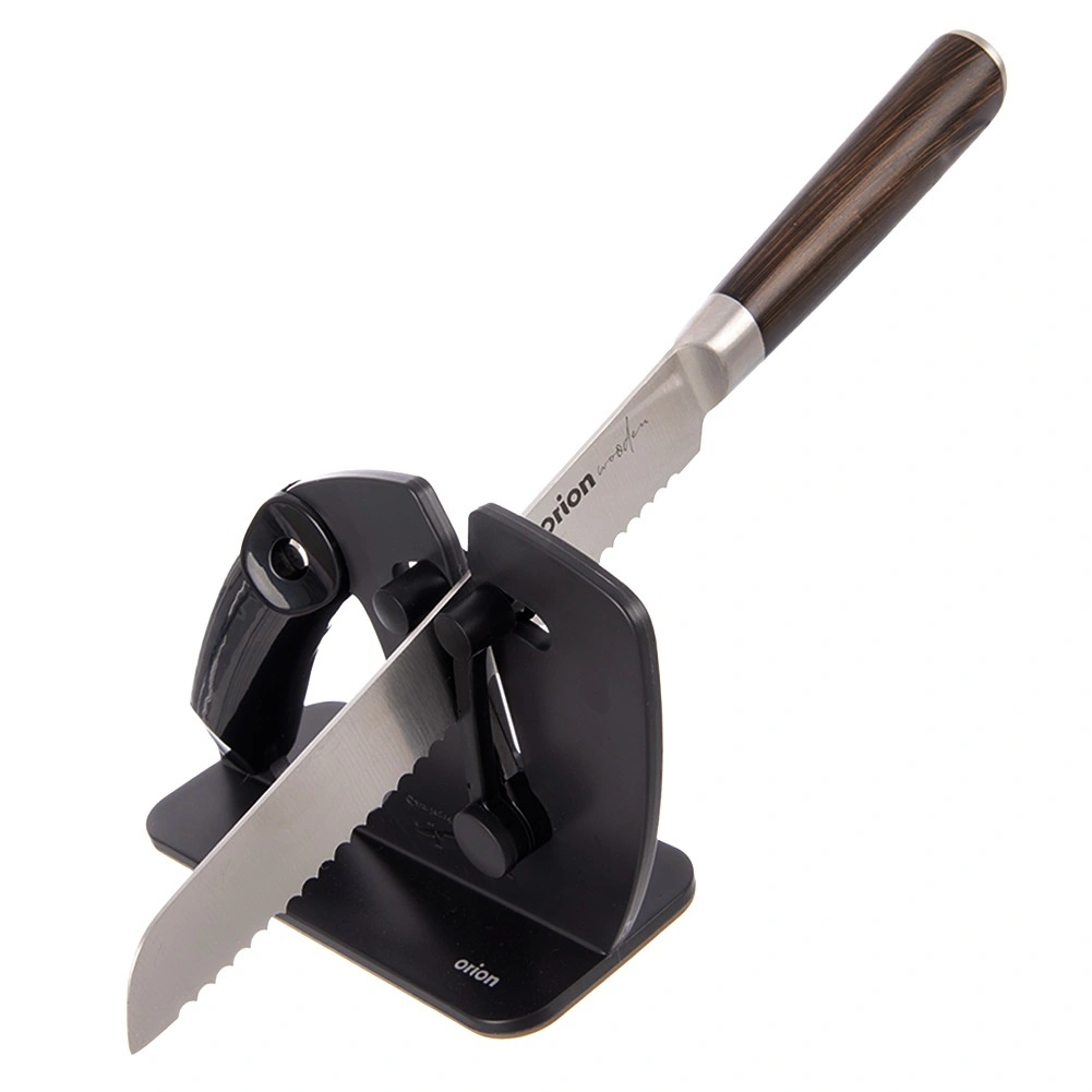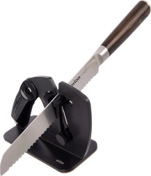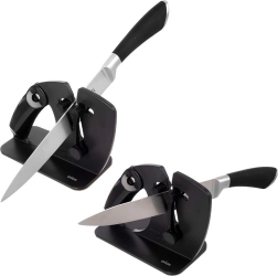 Meklējat universālu un uzticamu asinātāju ikdienas nažu kopšanai? Šis rokas 2 vienā asinātājs piedāvā automātisku leņķa iestatīšanu ar atsperu mehānismu, tādēļ tas vienmēr asina ideālā slīpumā. Piemērots tērauda nažiem ar gludu asmeni un arī zobainiem nažiem (piem., maizes nazim). Kompaktie izmēri 20 × 7,5 × 13 cm labi der gan uz virtuves virsmas, gan atvilktnē.