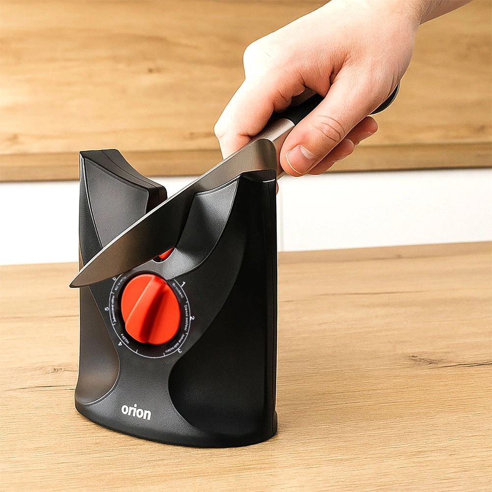 Uzturiet savu virtuves aprīkojumu lieliskā stāvoklī ar universālo 6-vienā asinātāju. Pateicoties pārskatāmajam rotējošajam slēdzim, viegli izvēlēsieties pareizo režīmu priekšasināšanai, ikdienas pieveidošanai, smalkai pulēšanai, šķēru asināšanai, vienpusējai slīpmai un zāģveida maizes nažiem. Kompaktie izmēri 10 × 6 × 12 cm taupa vietu un ļauj asinātāju turēt vienmēr pa rokai.