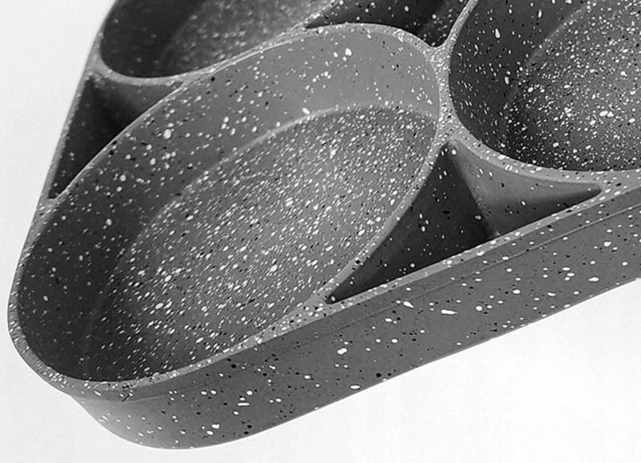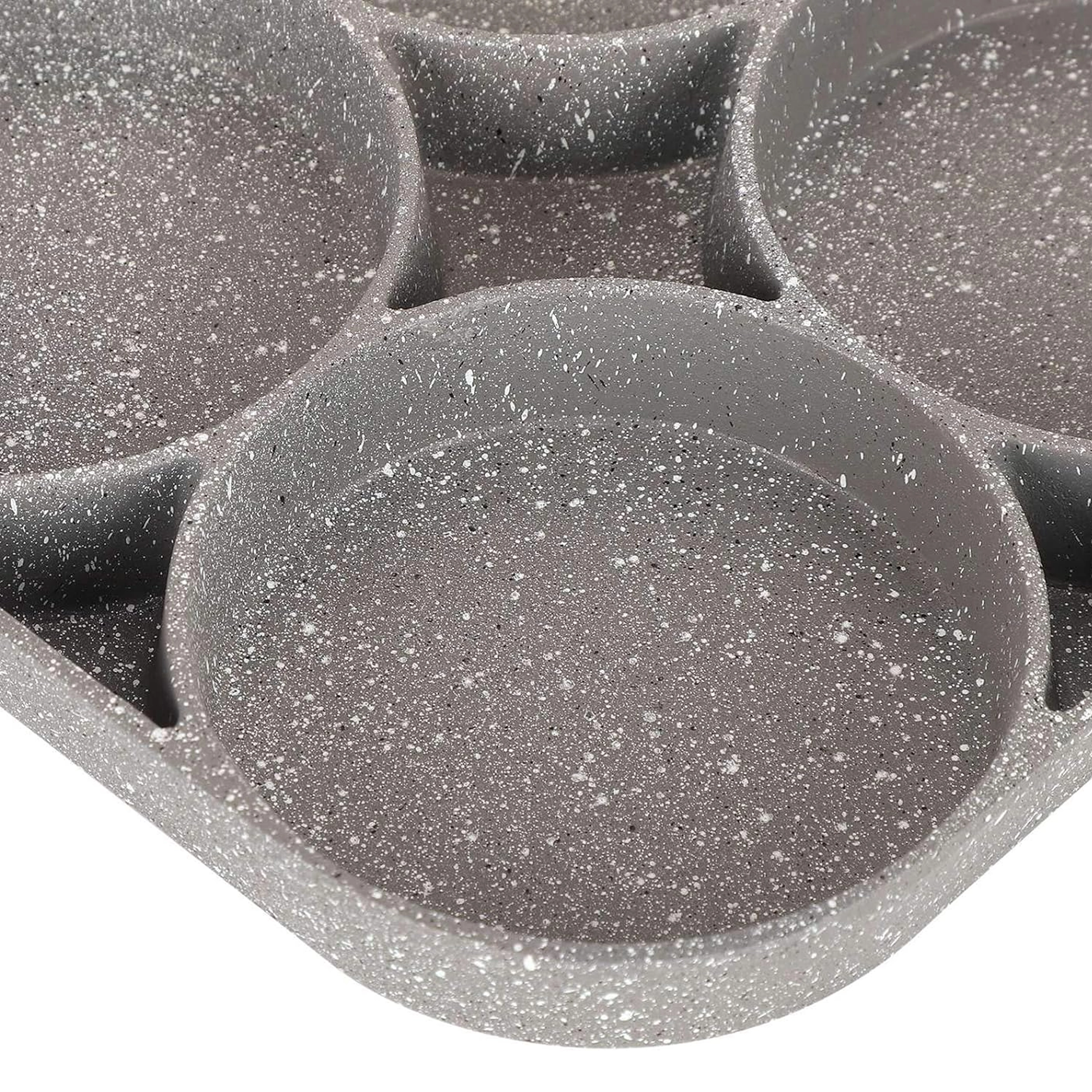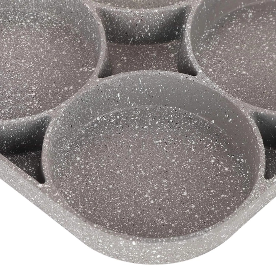 Šī četrdaļīgā panna ir ideāla ātrai un sabalansētai brokastu vai uzkodu pagatavošanai. Atdalītās kameras uztur porcijas glīti apaļas un vienmērīgas, savukārt raibais nelīpošais pārklājums nodrošina vieglu apgriešanu bez piedegšanas un vienkāršu tīrīšanu.