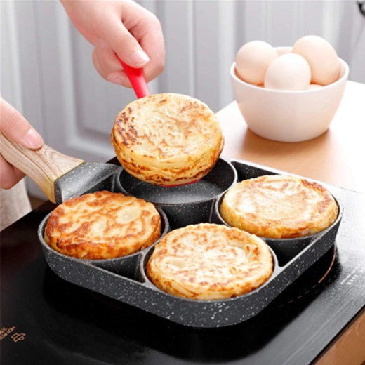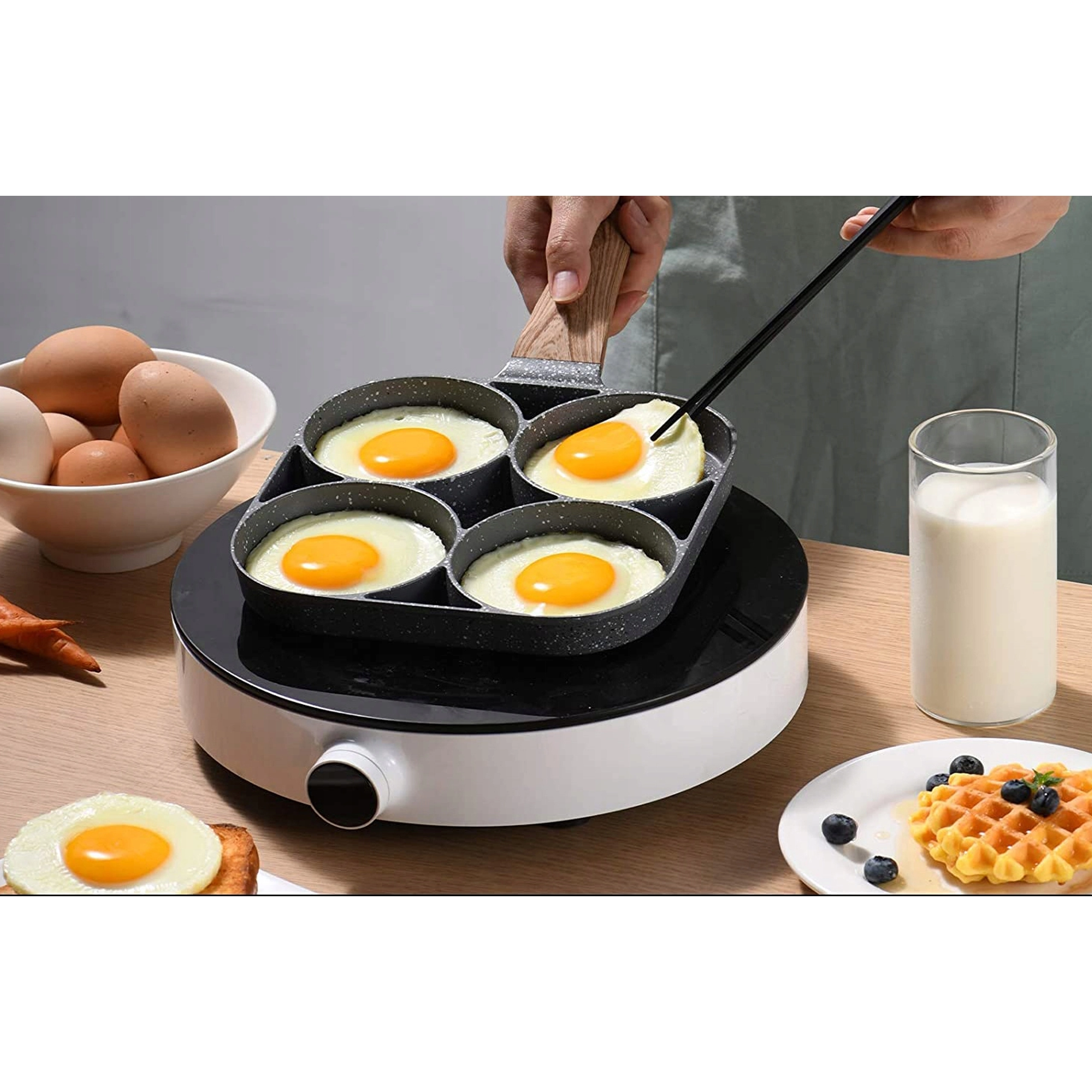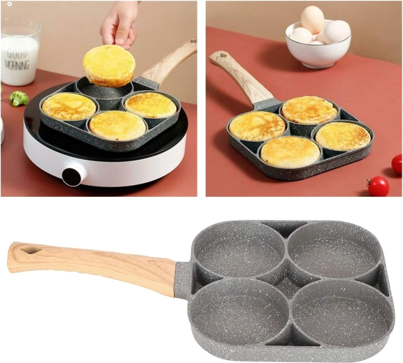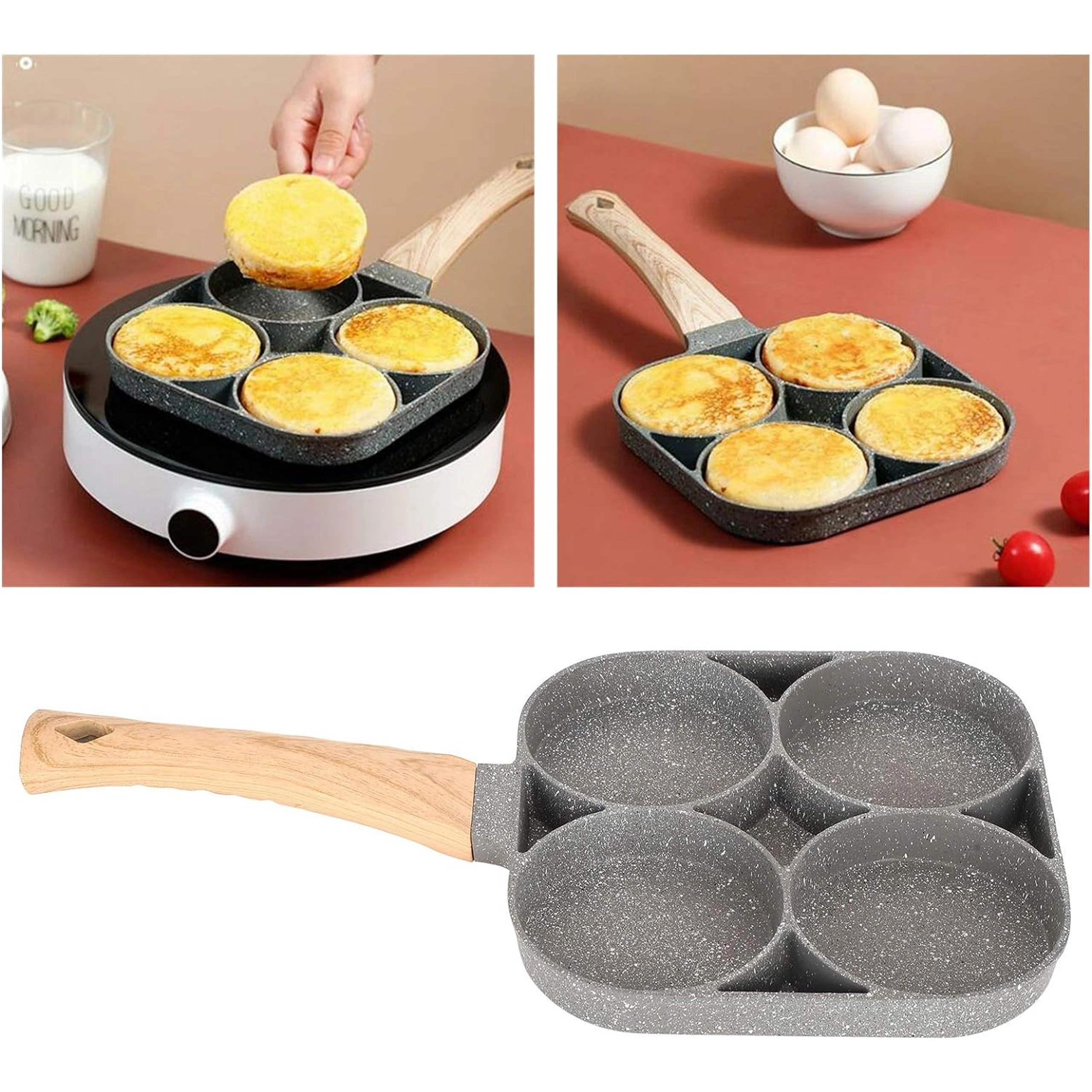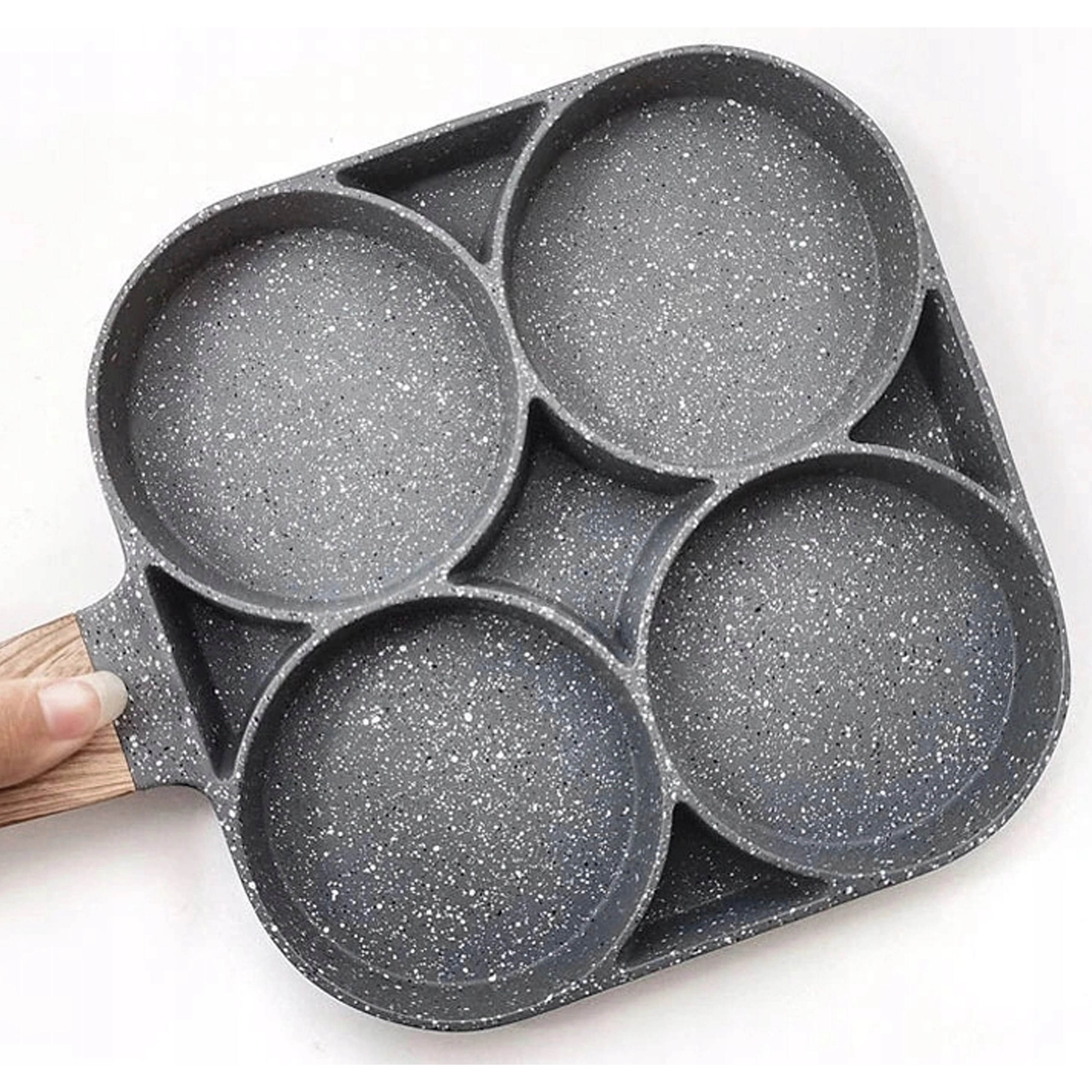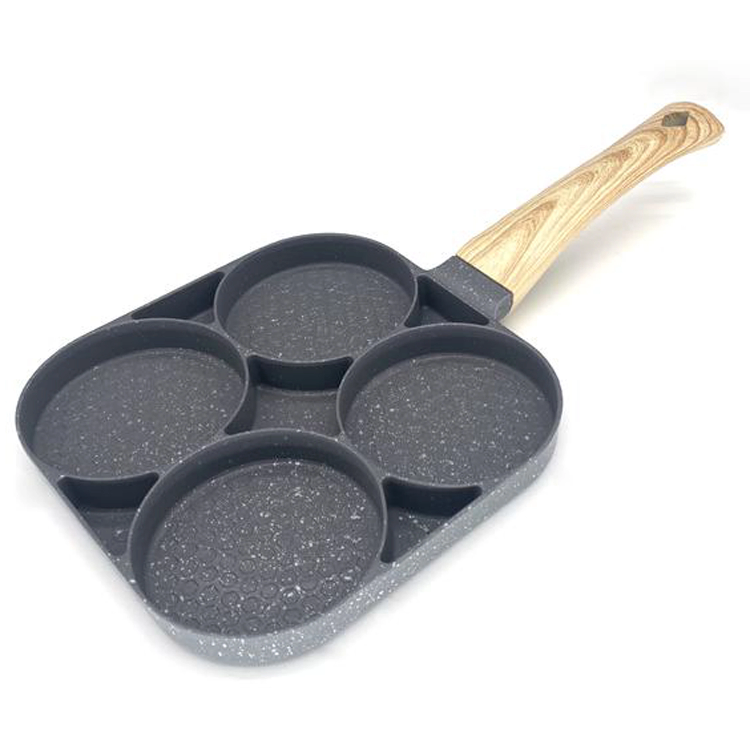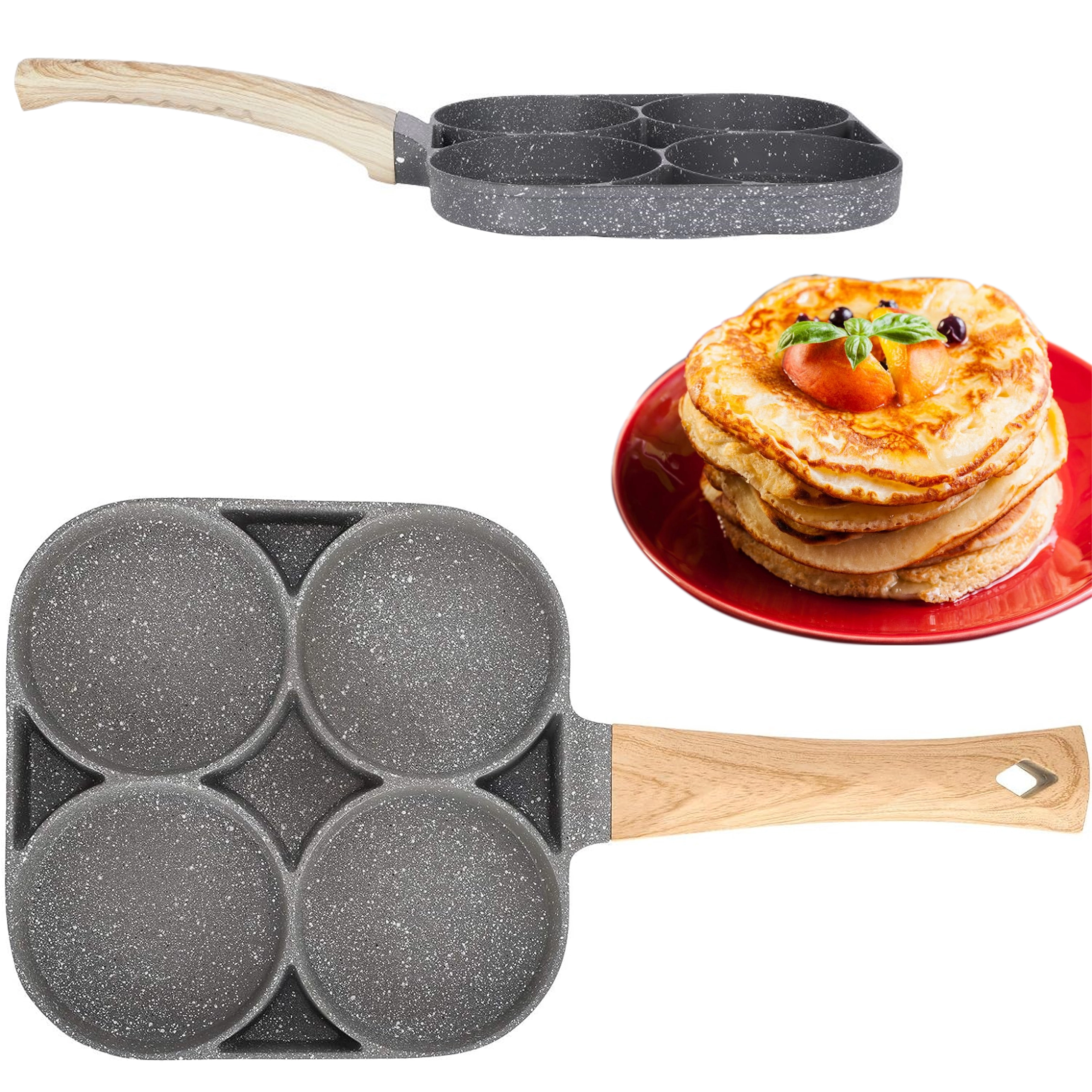 Pagatavojiet brokastis ātrāk un bez nekārtības ar šo universālo pannu ar četrām apaļām kamerām. Pateicoties nelīpošajam pārklājumam un vienmērīgai siltuma sadalei, jūs vienlaikus sagatavosiet olas, pankūkas, plāceņus un mini plānās pankūkas perfekti veidotas. Ergonomiska roktura koka izskats nodrošina patīkamu satvērienu, un panna ir piemērota indukcijai, gāzei un citiem plīts veidiem.