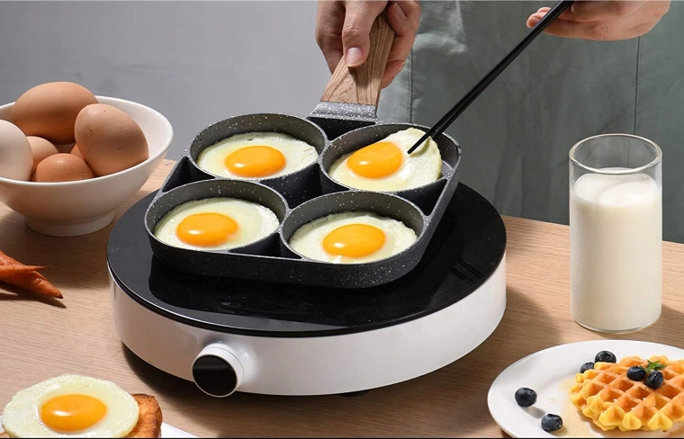 Atdalītās apaļās kameras uztur olas vai pankūkas ideālā formā un saīsina visas brokastu gatavošanas laiku.
