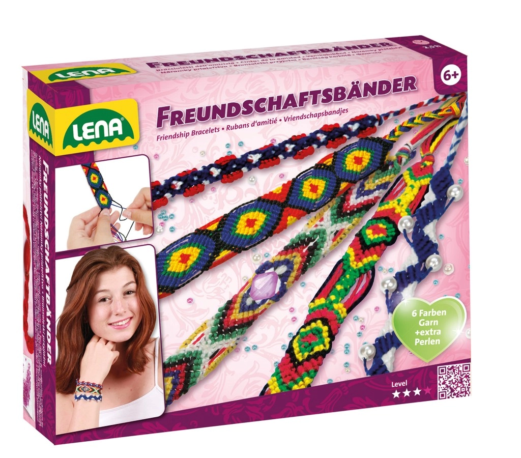 Pilns radošais komplekts savai rokassprādžu izgatavošanai no zīmola LENA. Iekļautas krāsainas dzijas, dekoratīvas pērlītes un detalizēta instrukcija ar 200 ilustrācijām, pateicoties kurai veidošana ir vienkārša un aizraujoša. Lieliski piemērots bērniem no 6 gadu vecuma, kuri vēlas attīstīt radošumu un sīko motoriku.