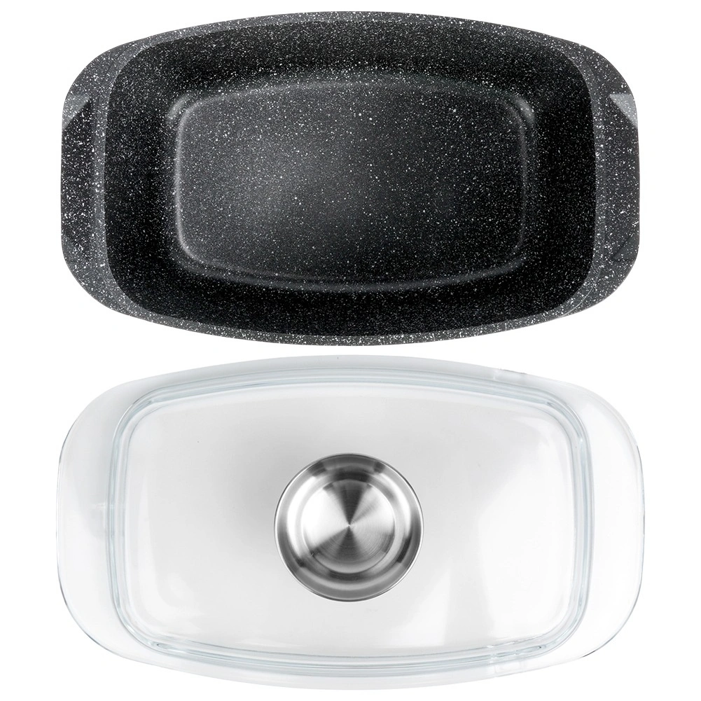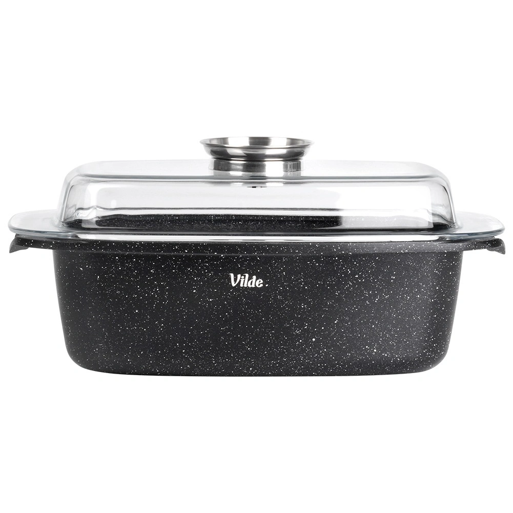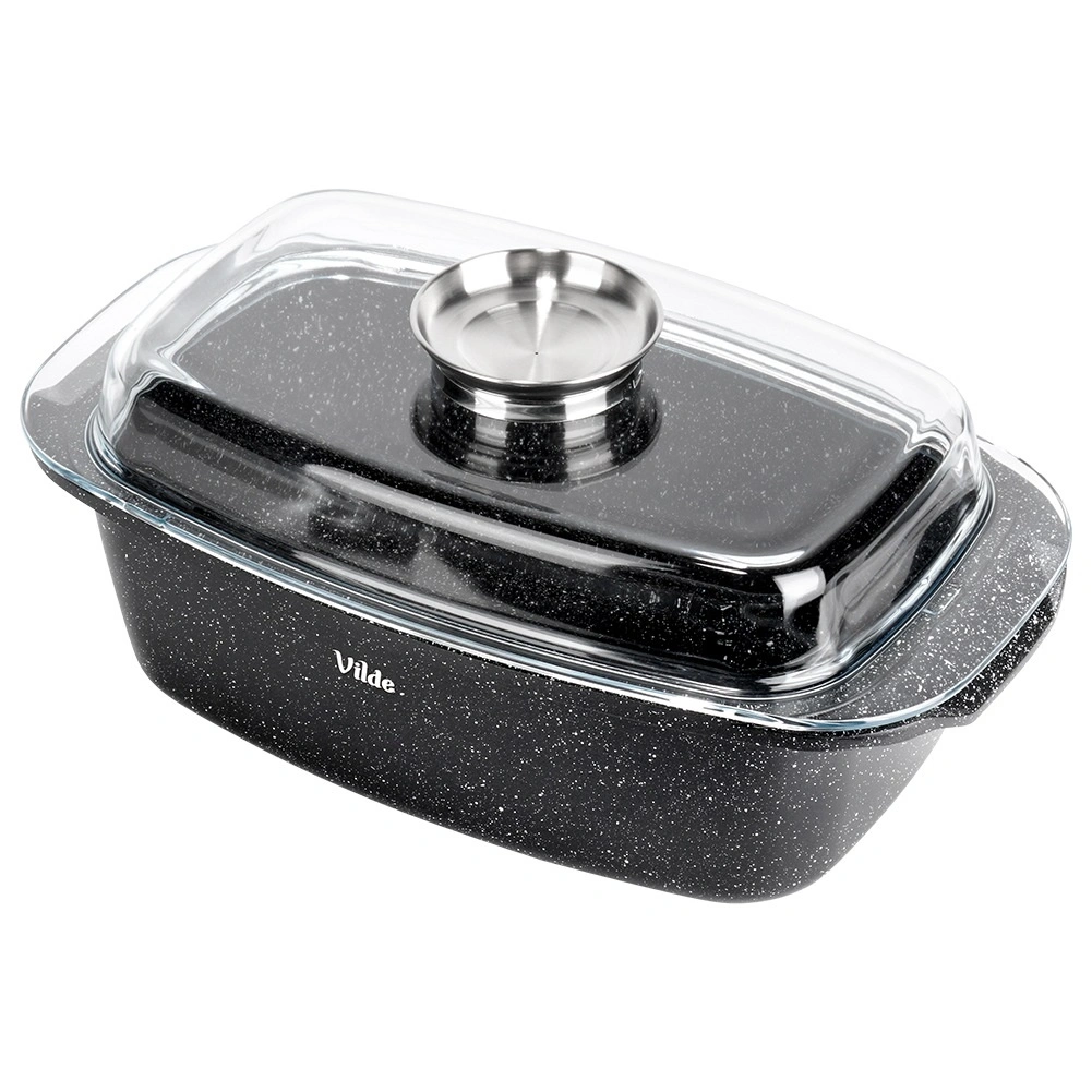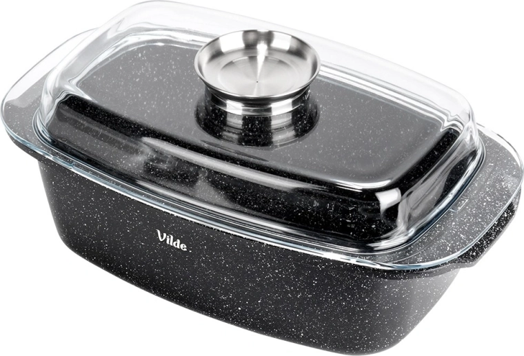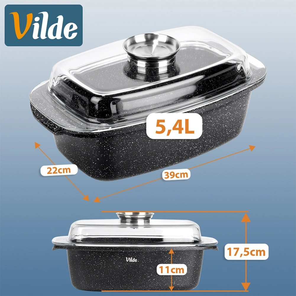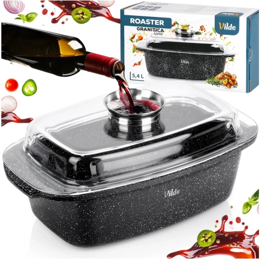 Taisnstūra cepamtrauks no alumīnija lējuma ar izturīgu nelīpošu granīta kārtu ir daudzpusīgs palīgs ikdienas gatavošanai. Stikla vāks ar centrālo šķidro piedevu dozatoru ļauj papildināt ūdeni, vīnu vai marinādi, nepaceļot vāku – sulīgiem un aromātiskiem rezultātiem.