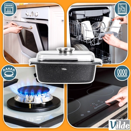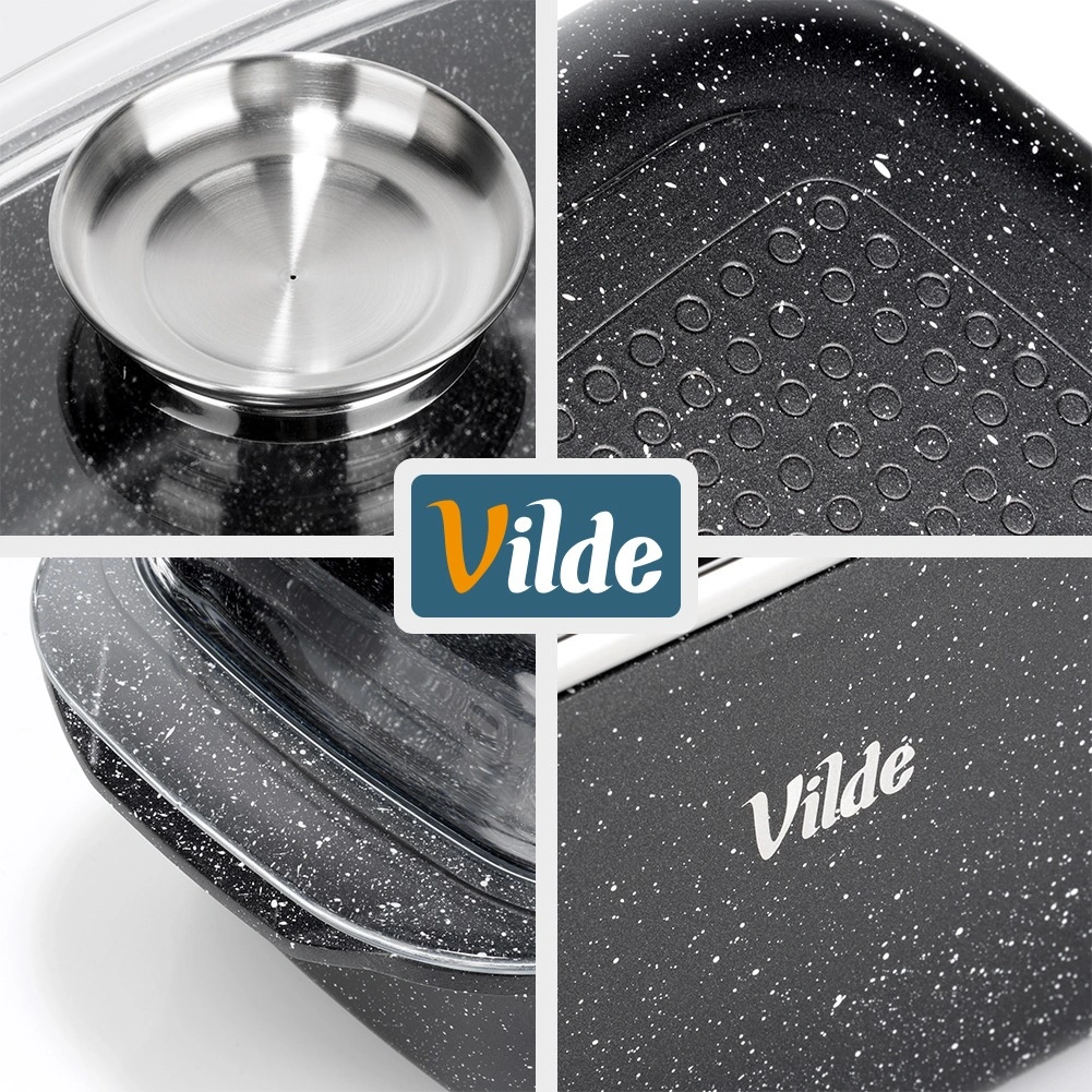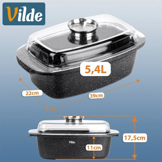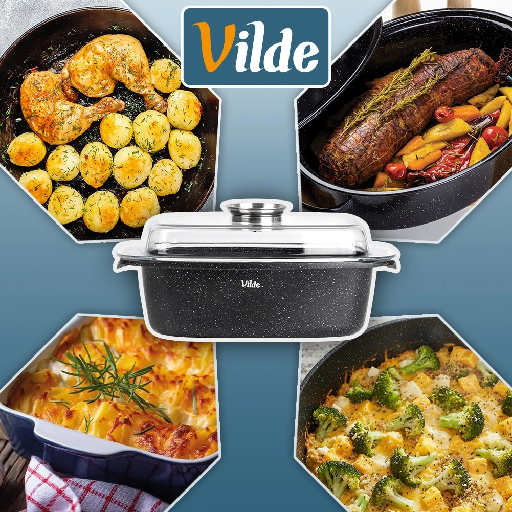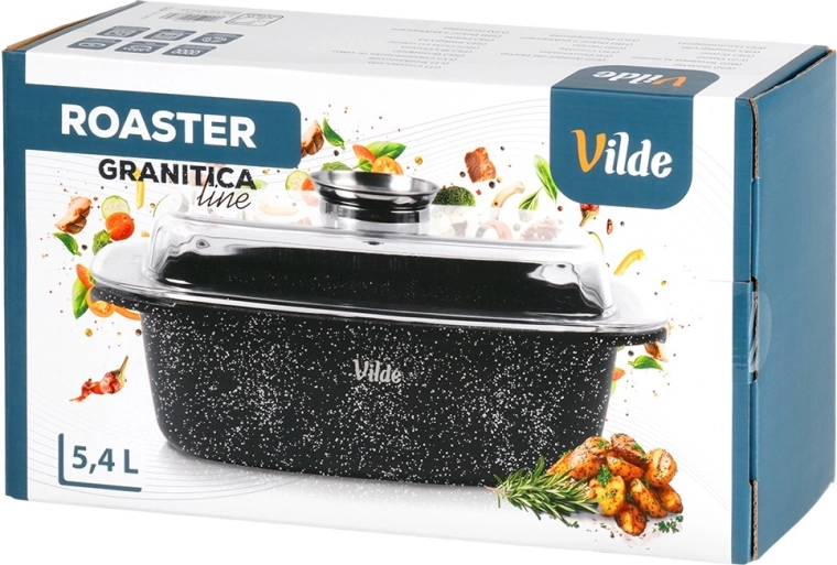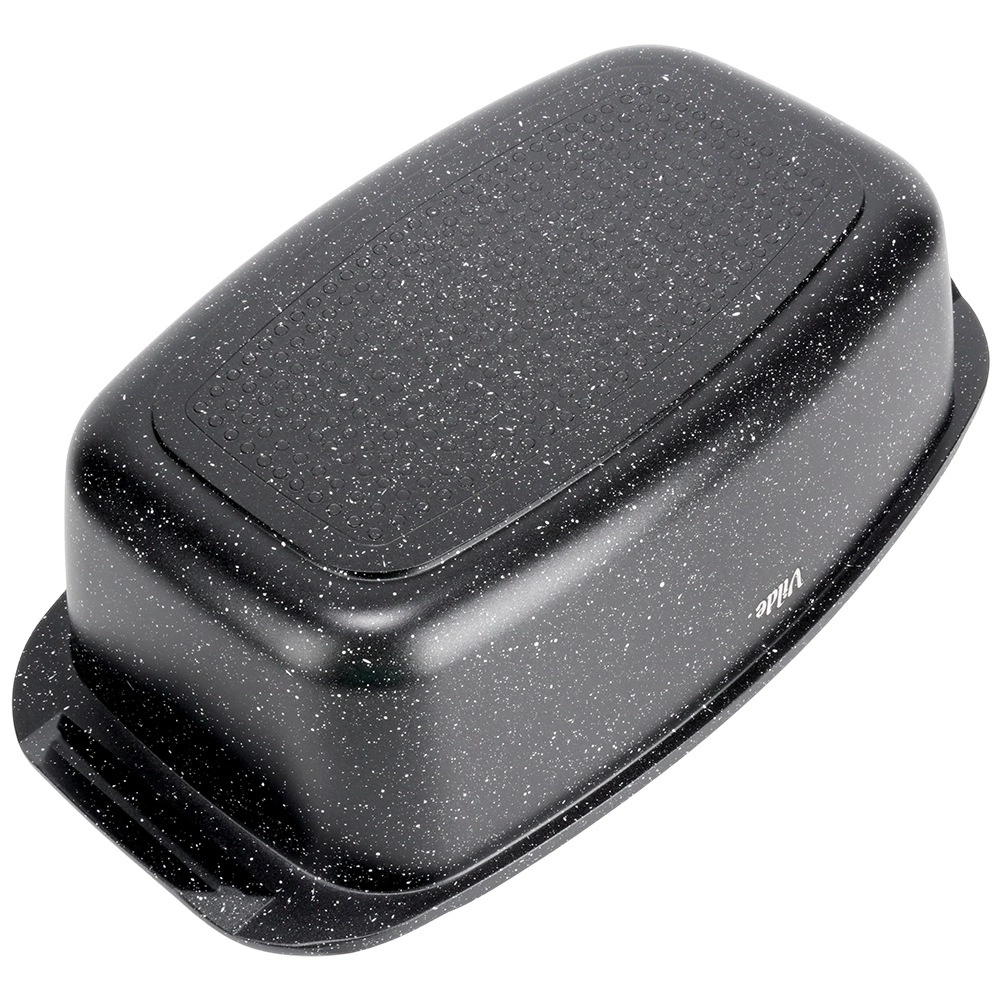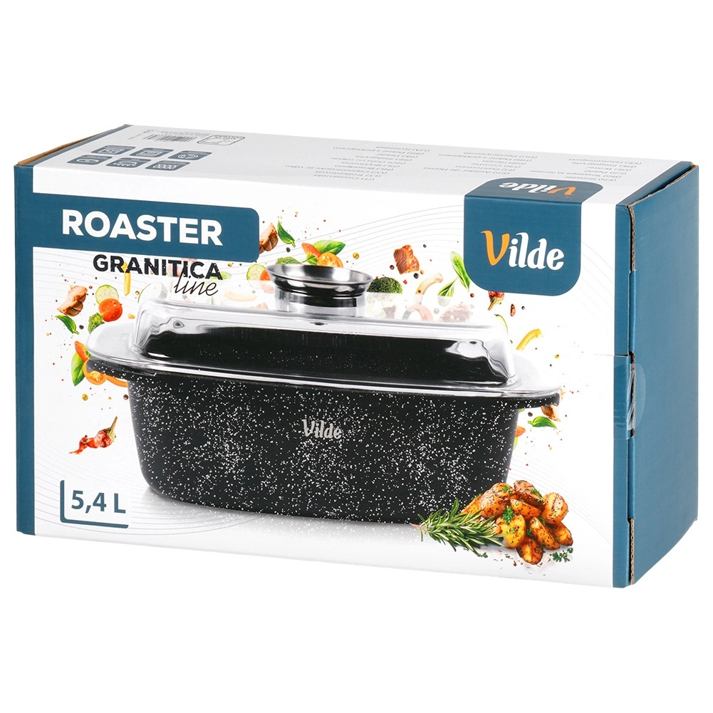 Taisnstūra cepamtrauks no alumīnija lējuma ar izturīgu nelīpošu granīta kārtu ir daudzpusīgs palīgs ikdienas gatavošanai. Stikla vāks ar centrālo šķidro piedevu dozatoru ļauj papildināt ūdeni, vīnu vai marinādi, nepaceļot vāku – sulīgiem un aromātiskiem rezultātiem.