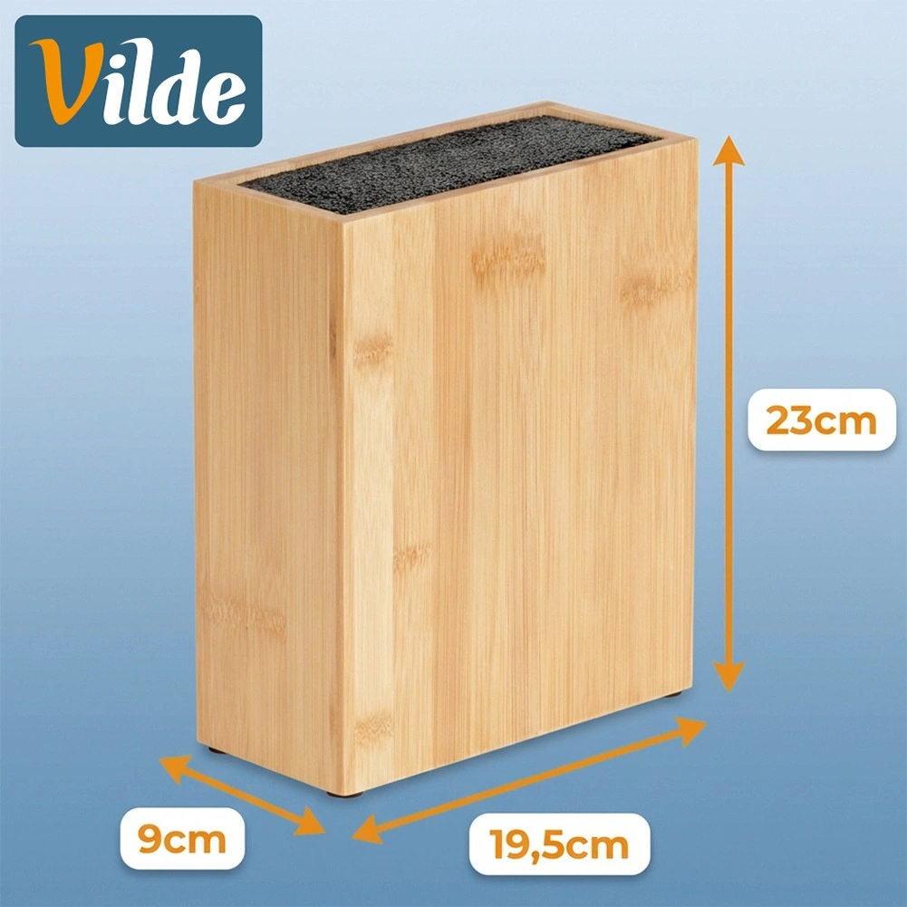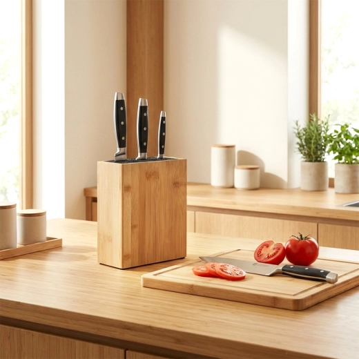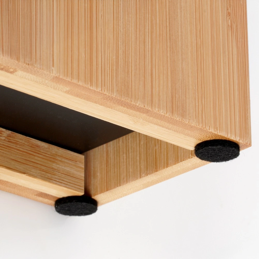 Dabīgais bambuss ar gludu apdari lieliski papildina virtuvi, un, pateicoties iespējamajiem filca paliktņiem, bloks stabili stāv savā vietā.
