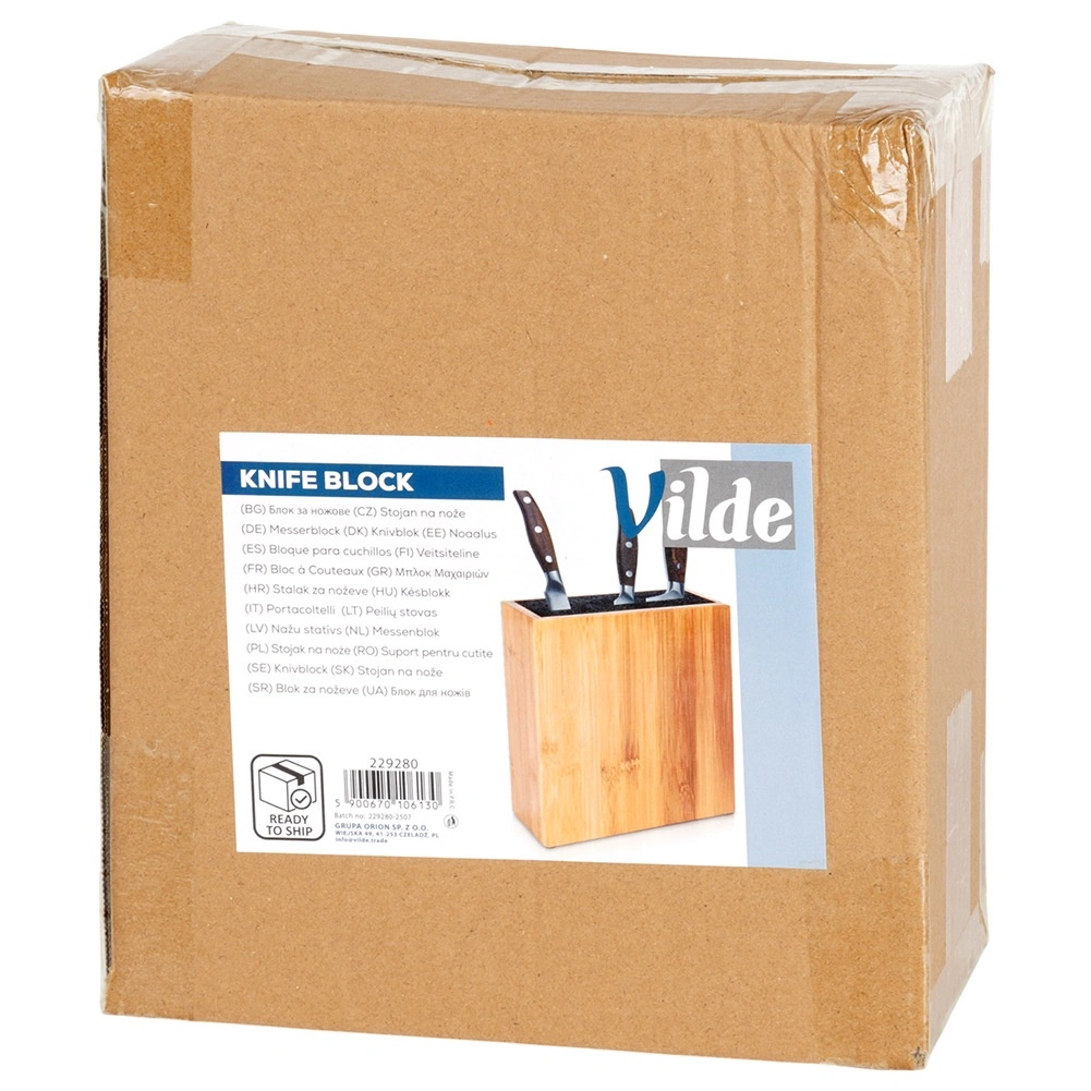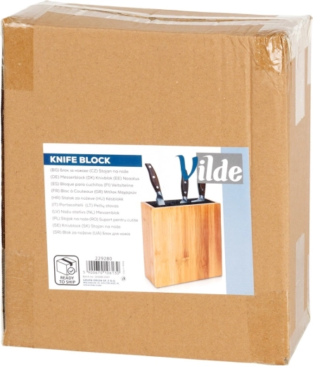 Stilīgs un praktisks nažu bloks no dabīga bambusa vienmēr turēs jūsu virtuves piederumus pa rokai. Universālā sariņu (bristoles) ieliktnīte pielāgojas asmens formai un platumam, aizsargājot asmeni no notrulināšanas. Mūsdienīgs, tomēr laikmetīgs dizains iederas jebkurā virtuvē.