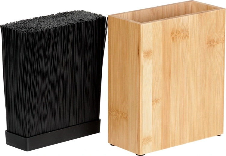 Izņemamā ieliktnīte nodrošina ērtu tīrīšanu, un bloks, pateicoties kompaktajiem izmēriem, ir ideāls uz darba virsmas. Bambuss ir ekoloģisks un izturīgs materiāls, kas dabiski saskan ar citiem koka aksesuāriem.