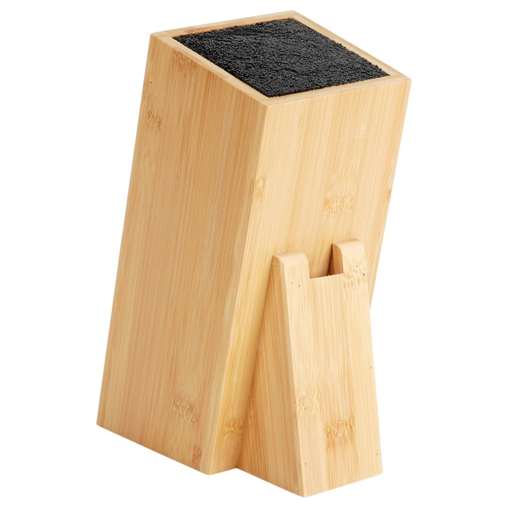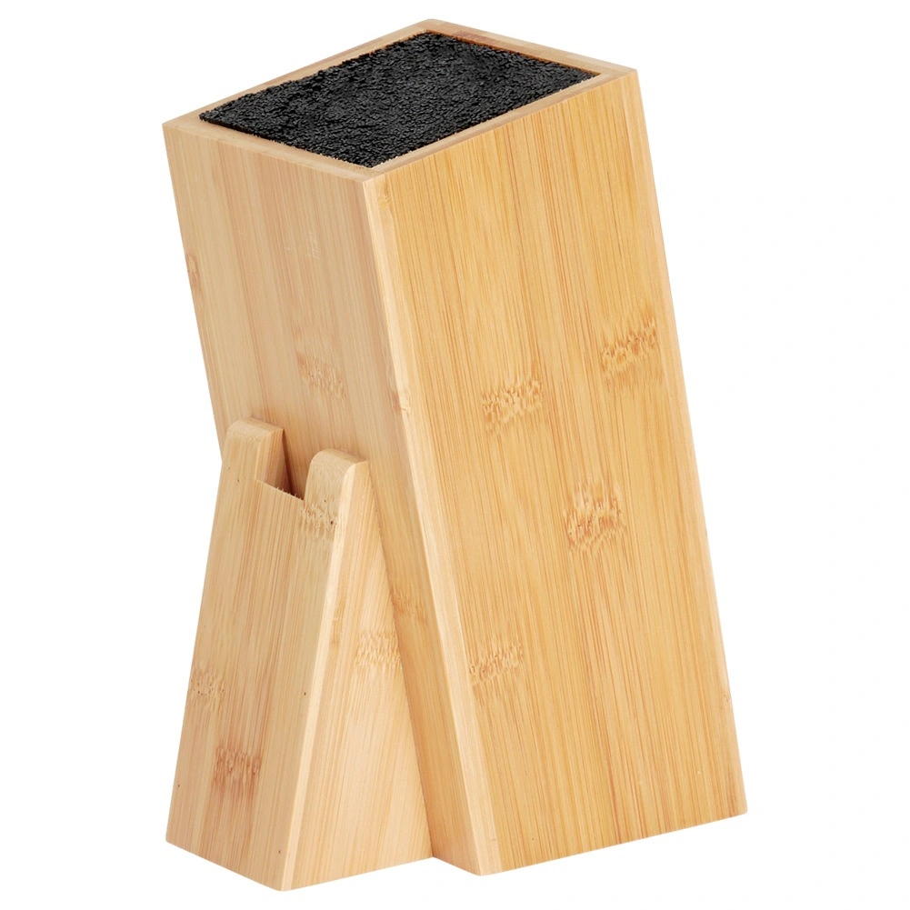 Universāls statīvs nažiem un virtuves piederumiem no kvalitatīva bambusa koka apvieno dabisku izskatu, stabilitāti un praktisku uzglabāšanas risinājumu. Blīvās izņemamās šķiedras blokā pielāgojas katram asmenim, notur to droši vietā un vienlaikus aizsargā asmeni no notrulināšanās. Slīpais izpildījums nodrošina ērtu nažu ievietošanu un izņemšanu.