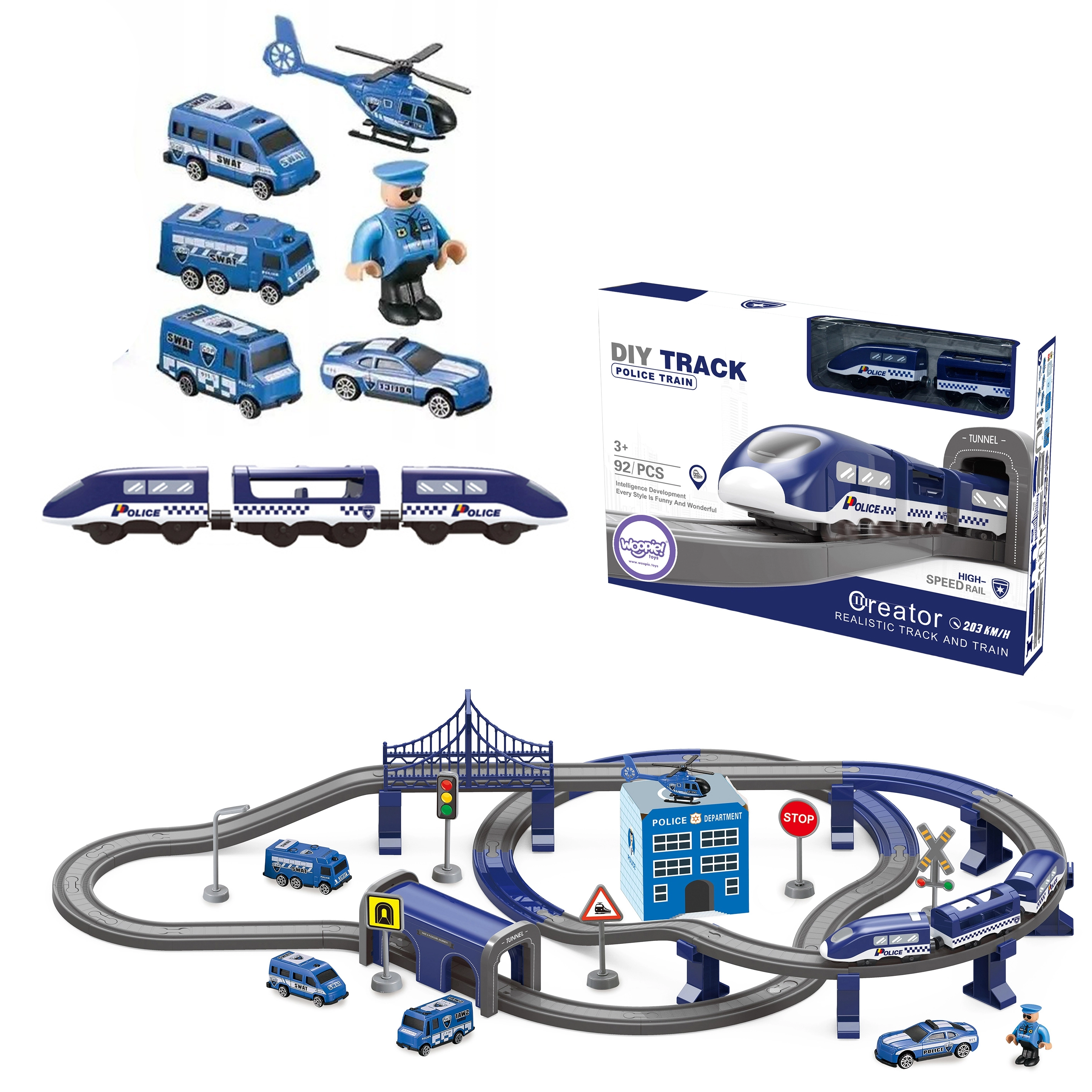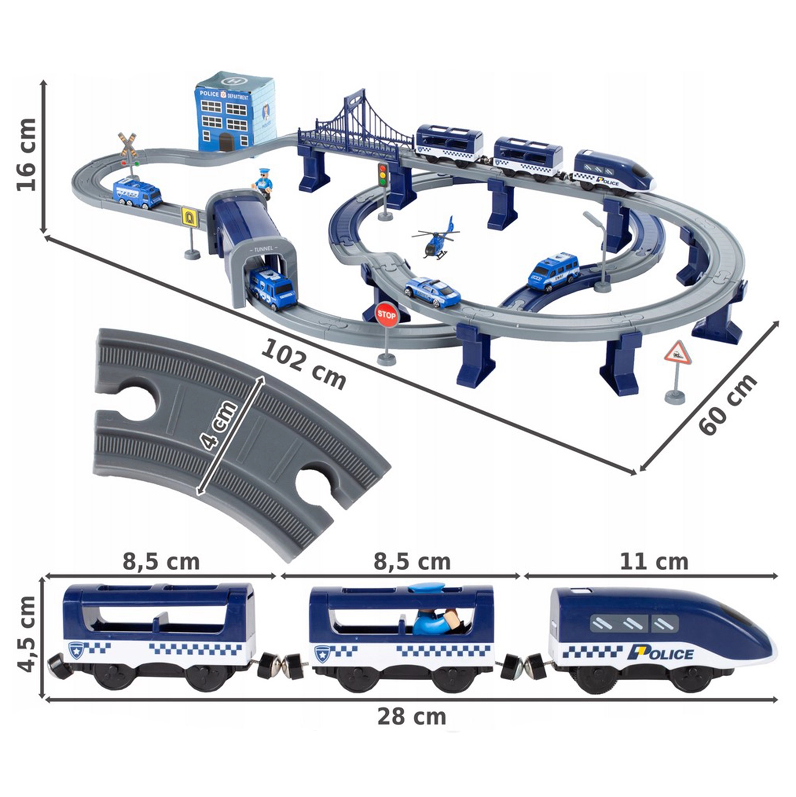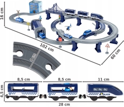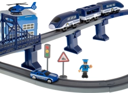 Šī detalizēti izstrādātā policijas vilciena trase apvieno bērnu iemīļotās pasaules – vilcienus, auto, helikopterus un policiju. Ar bagātīgo detaļu komplektu varēsiet izveidot līdz pat 6 dažādām trases variācijām, tostarp divstāvu sliežu vadību, tiltu un tuneli. Vagonu magnētiskie savienojumi atvieglo apkalpošanu, un lokomotīves piedziņa nodrošina vienmērīgu braucienu.