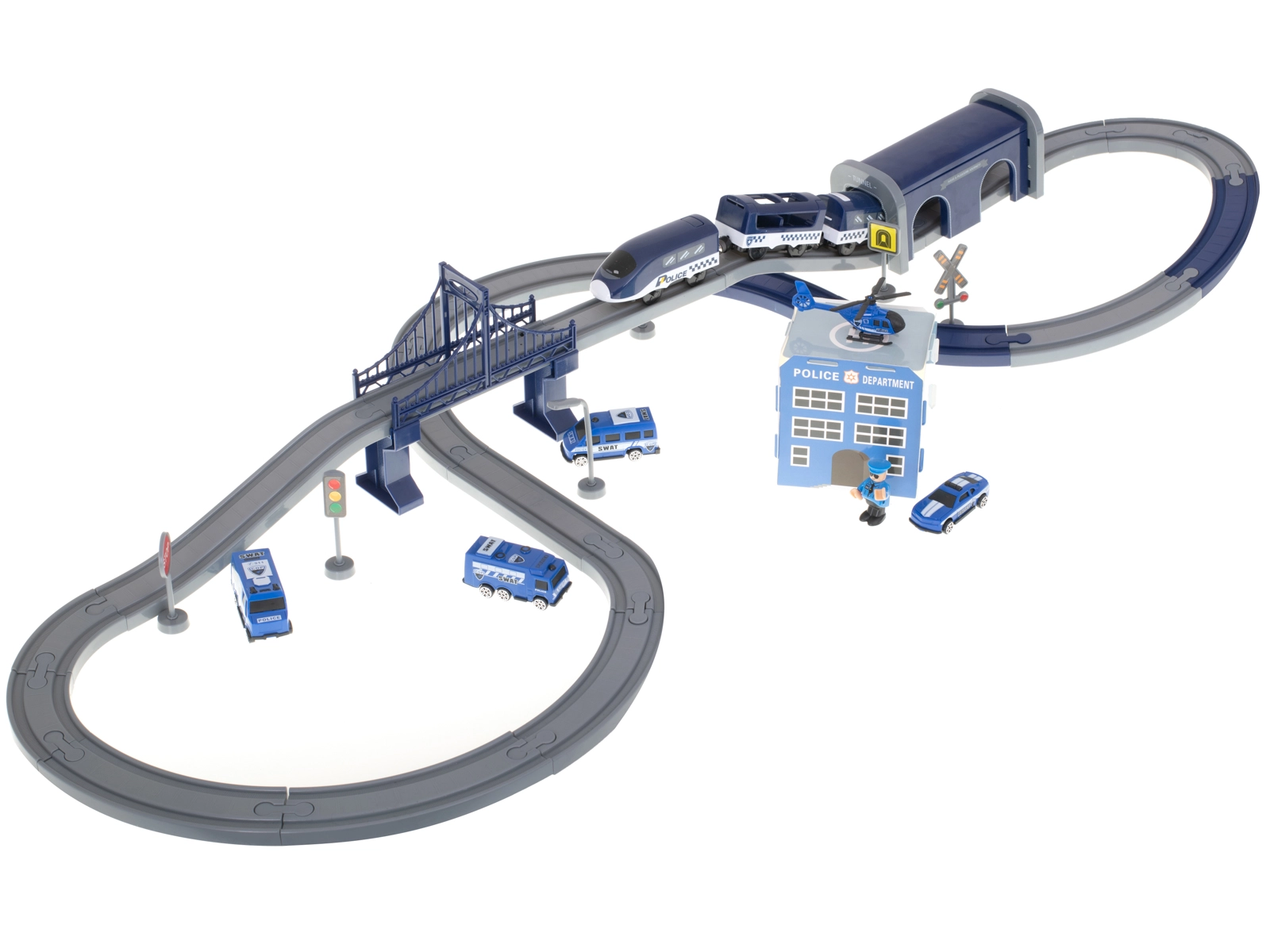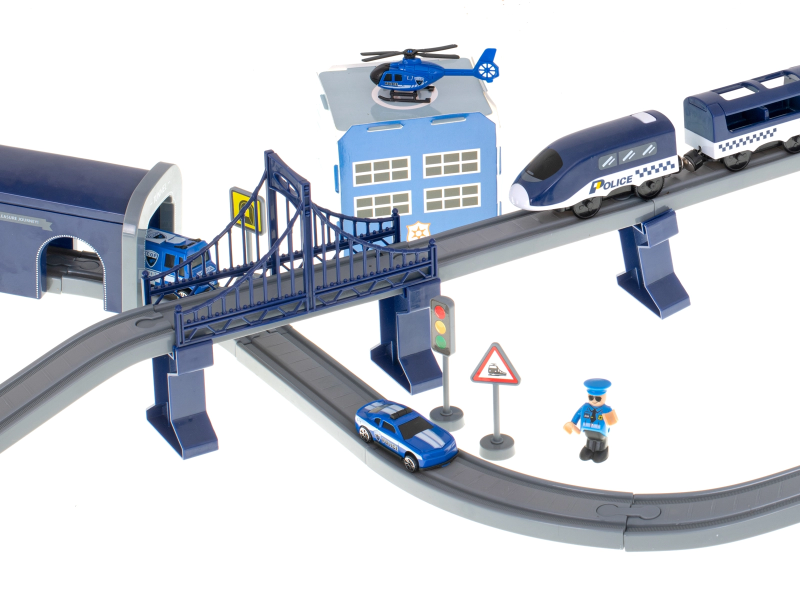 - Policijas stacija ar heliportu, tilts, tunelis un ceļa zīmes