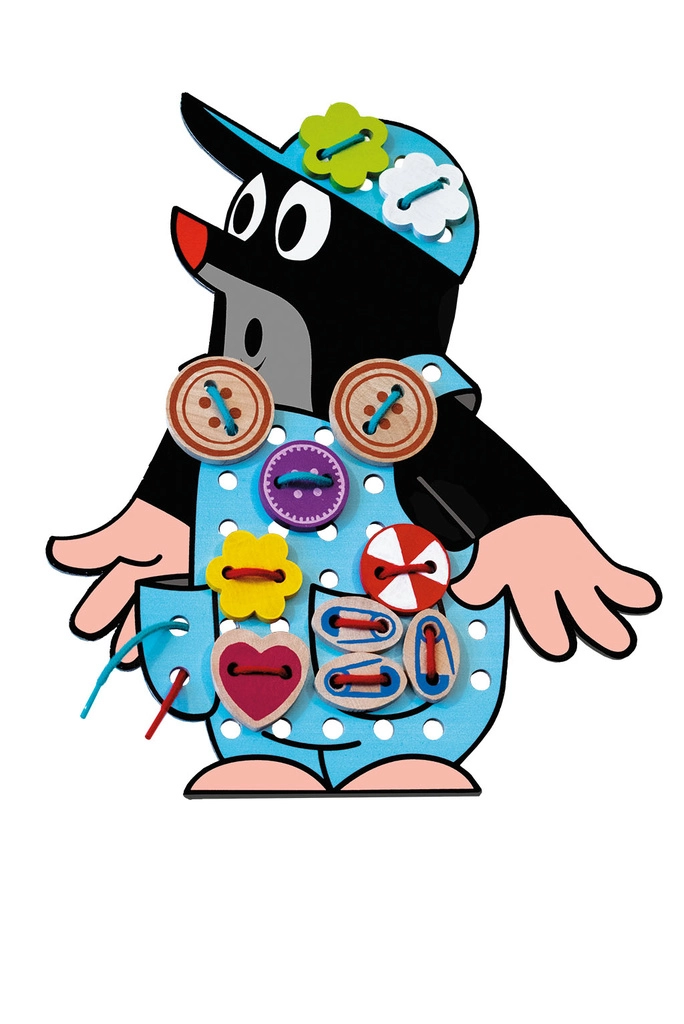 Šī rotaļlieta palīdz bērniem attīstīt roku sīko motoriku, izmantojot interaktīvu izšūšanu un piestiprināšanu.