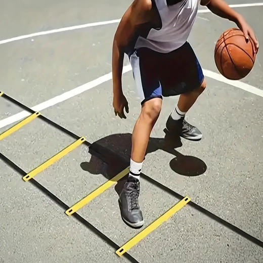 Koordinācijas trepes ar regulējamām plakanām šķērslatām uzlabo soļa tehniku un potīšu stabilitāti. Zema profila konusi un mini barjeras palielina vingrinājumu intensitāti bez lieka paklupšanas riska. Pretestības izpletnis piešķir mainīgu slodzi spēka‑ātruma skrējieniem, savukārt lēkšanas aukla papildina treniņa kardio daļu.
