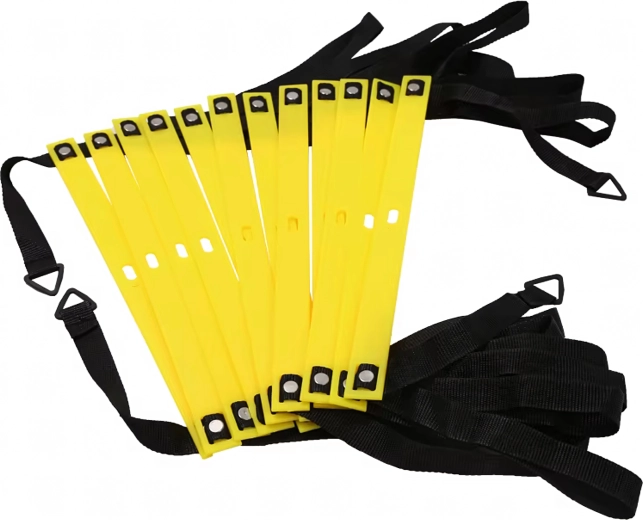 Plakanas dzeltenas šķērslatas uz izturīgām siksnām var viegli pārbīdīt. Ideāli ātriem soļiem, laterālai kustībai un līdzsvara, kā arī skrējiena ritma uzlabošanai.