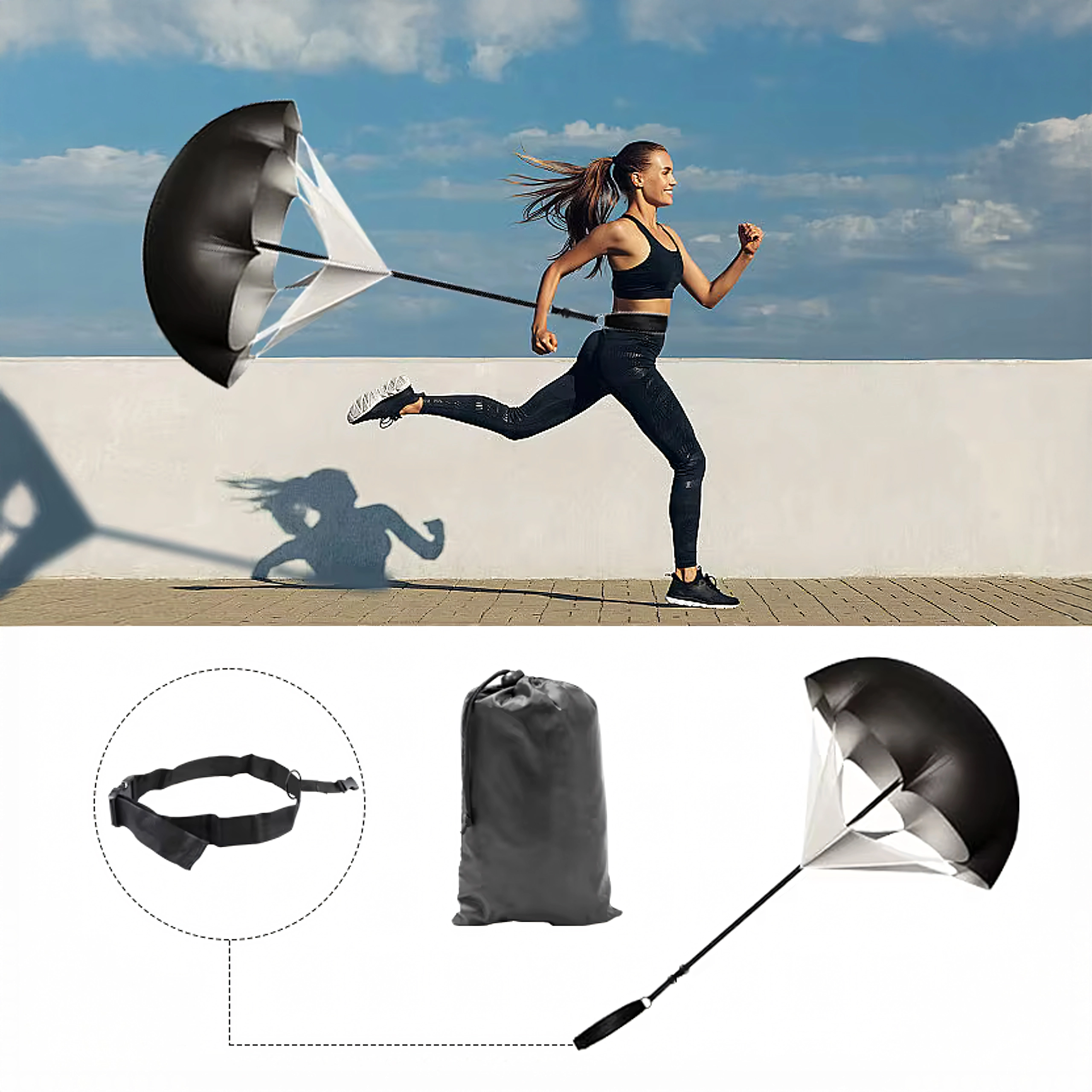 Viegls izpletņa slodzes risinājums palielina pretestību sprinta laikā un palīdz attīstīt akselerāciju un maksimālo ātrumu. Regulējama josta stingri turas vietā, un izpletni var viegli salocīt pievienotajā maisā.