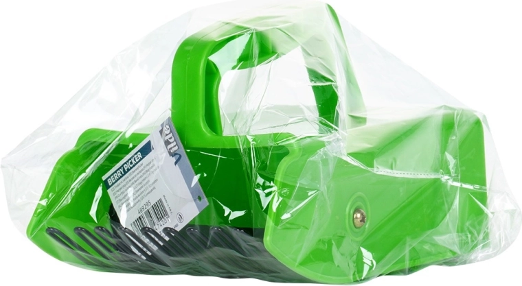 Ergonomiska roktura forma lieliski pieguļ plaukstai un atvieglo manevrēšanu starp krūmiem. Slēgtais dizains novērš ogu izkrišanu kustības laikā.