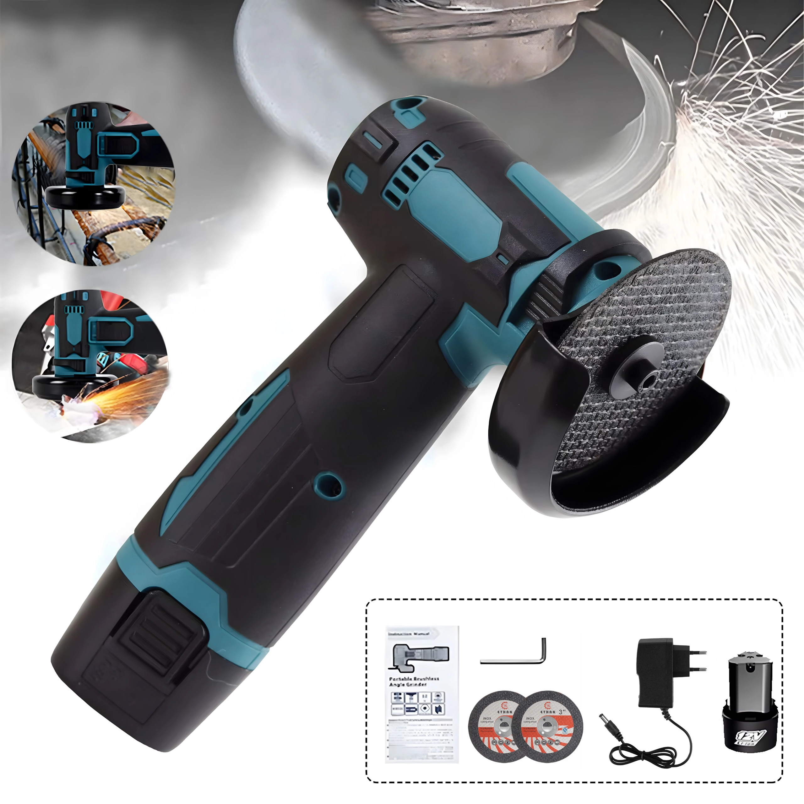 - Metāla, plastmasas, koka (ar atbilstošu disku) un flīžu griešana un slīpēšana