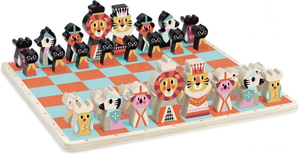 Šaha figūras ir attēlotas kā dažādi dzīvnieki, kas padara spēli aizraujošu un pievilcīgu mazajiem bērniem.