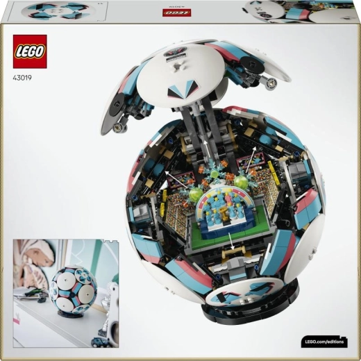 LEGO Editions Futbola bumbas (43019) komplekts iepriecinās gan futbola cienītājus, gan dizaina modeļu kolekcionārus. Pateicoties LEGO Technic elementiem, bumba iegūst autentisku, no oficiālās 5. izmēra bumbas iedvesmotu apaļu formu, bet virsmu rotā seši stilīgi dekoratīvi diski. Iekšpusē slēpjas pārsteigums – miniatūrs stadions ar dinamisku svinību ainu.