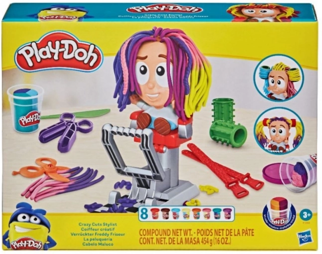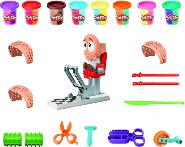Posēdiniet figūriņu krēslā un piespiediet – no galvas uzreiz izspiežas koša Play-Doh matu krēpe, gatava griešanai un veidošanai.