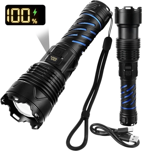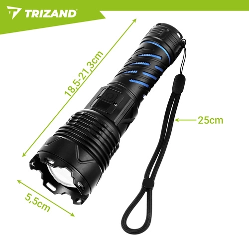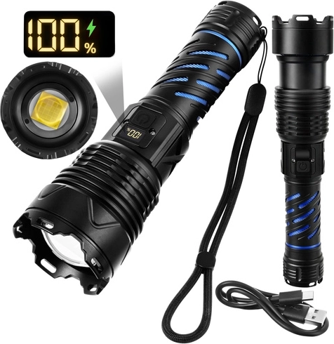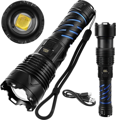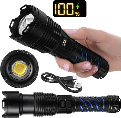 Šī robustā taktiskā LED lukturīte nodrošina 1500 lūmenu gaismas plūsmu un staras attālumu līdz 500 m, lai droši pārredzētu ceļu, pagalmu un attālus objektus. Pateicoties tālummaiņai, varat viegli pārslēgties starp platu gaismas kūli un šauru, fokusētu staru. Barošanu nodrošina 26650 5000 mAh akumulators ar darbības laiku līdz 8 stundām (atkarībā no režīma), ko ērti uzlādēt ar USB‑C.