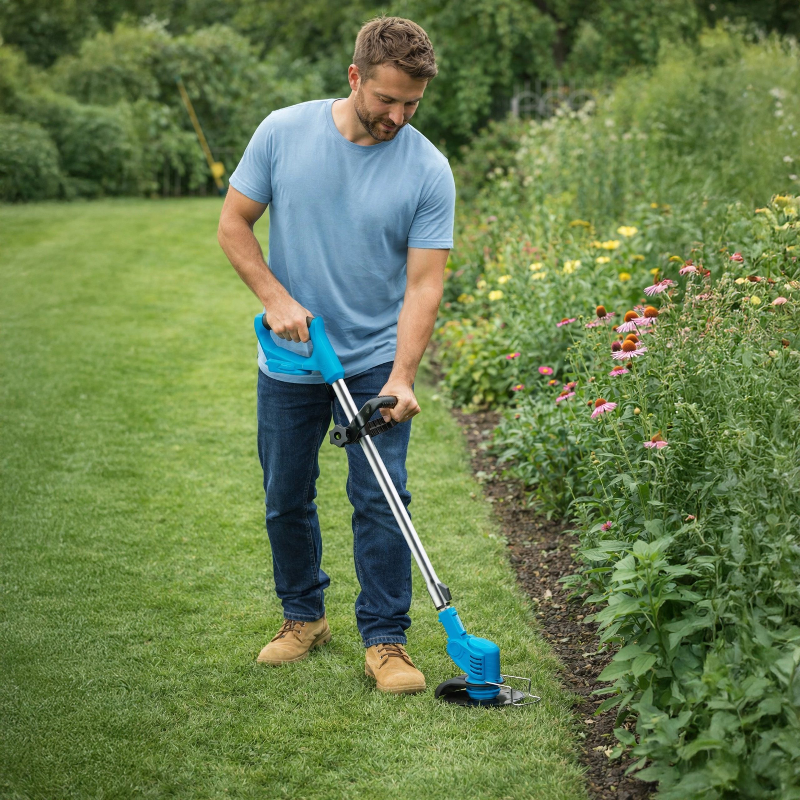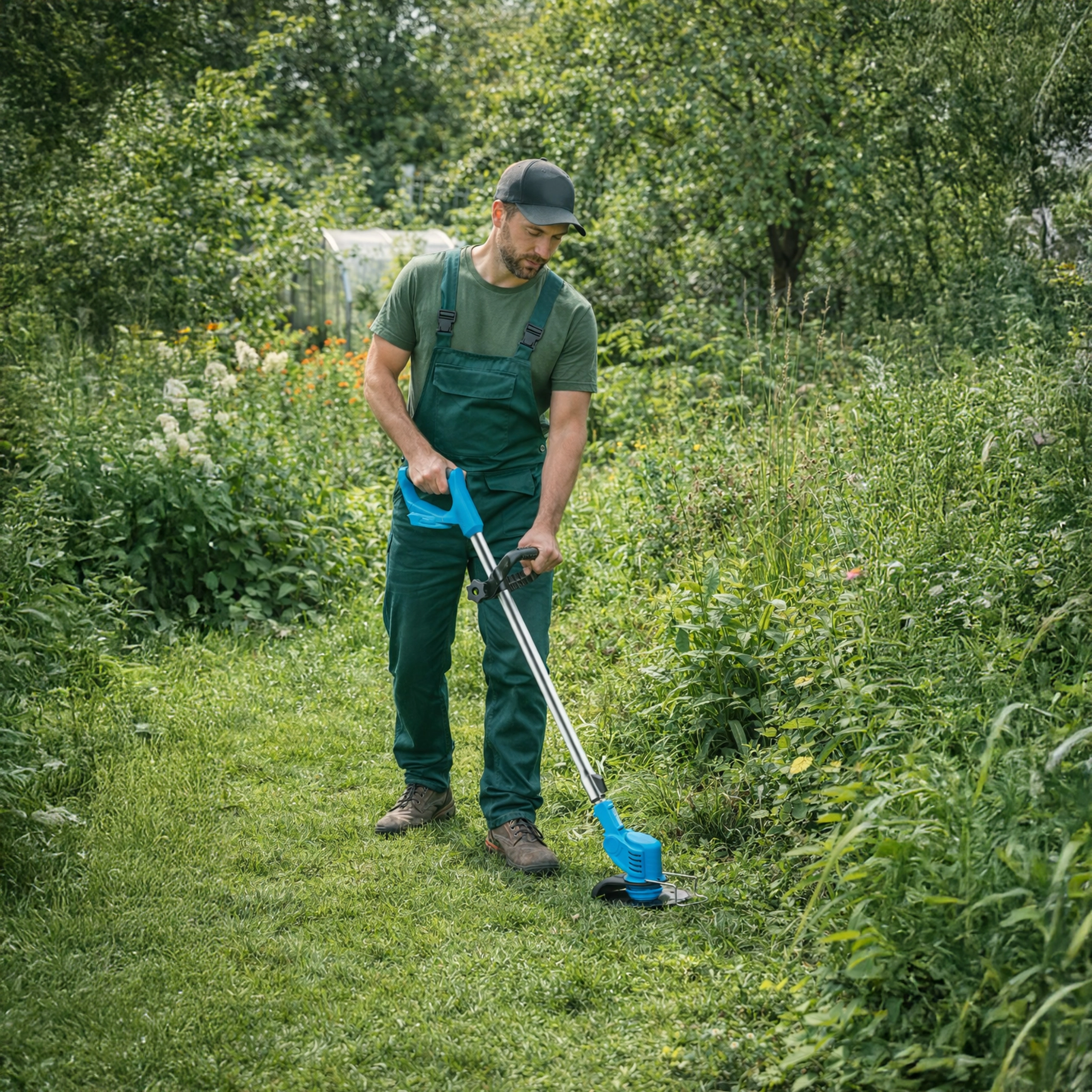 Viegls un vienlaikus jaudīgs akumulatora zāles trimmeris precīzai mauriņu, celiņu un grūtāk pieejamu vietu malu kopšanai. Pateicoties regulējamai teleskopiskai kātai, ergonomiskam rokturim un bagātīgam piederumu komplektam, viegli tiksiet galā gan ar smalku apgriešanu, gan blīvākiem krūmājiem. Divas Li‑ion baterijas un ātrā lādētāja nodrošina nepārtrauktu darbu bez kabeļa.